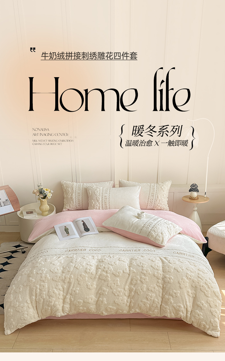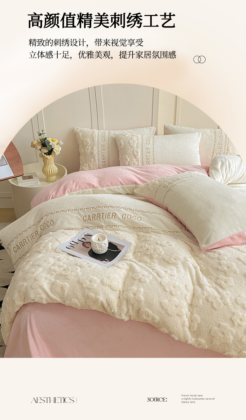 当前位置: 91家纺网 > 商品网购 > 床品套件 > 四件套 > 牛奶绒四件套 > 灰鲸 2025新款牛奶绒拼接刺绣四件套-安娜 安娜-奶昔白+可可粉