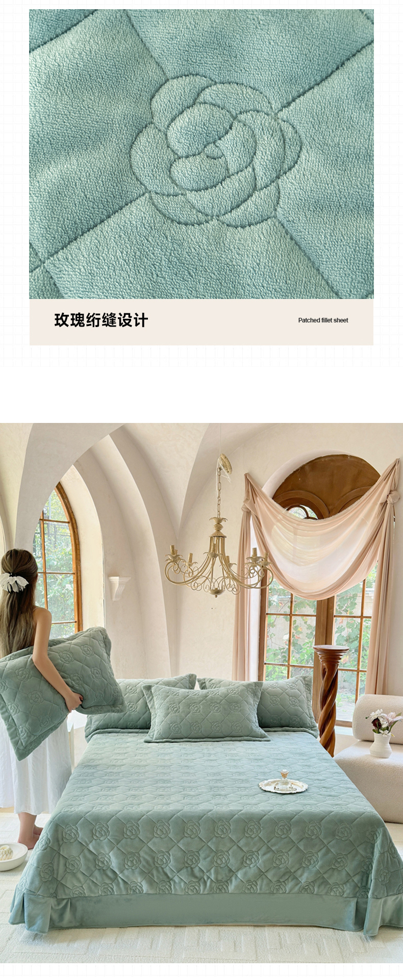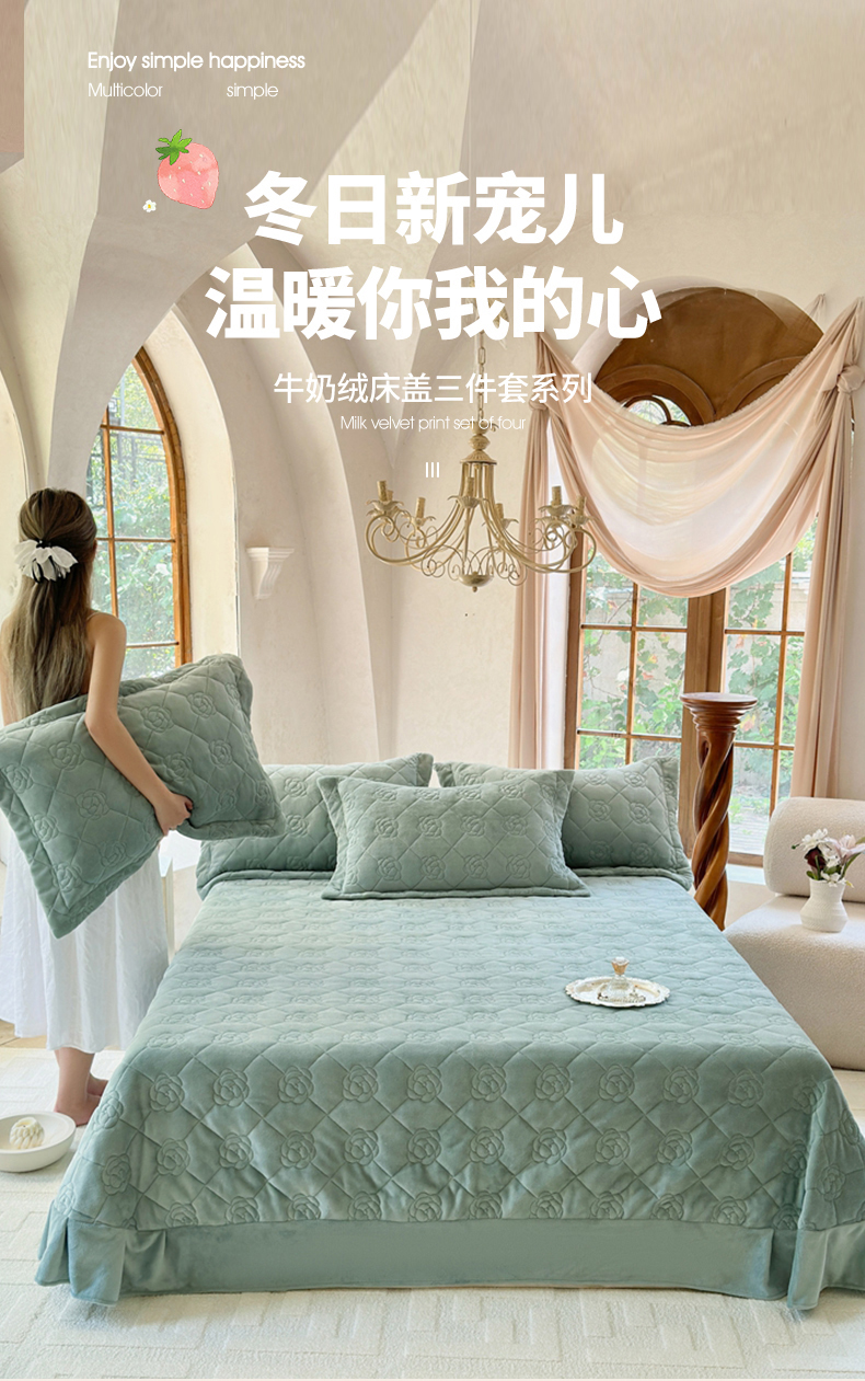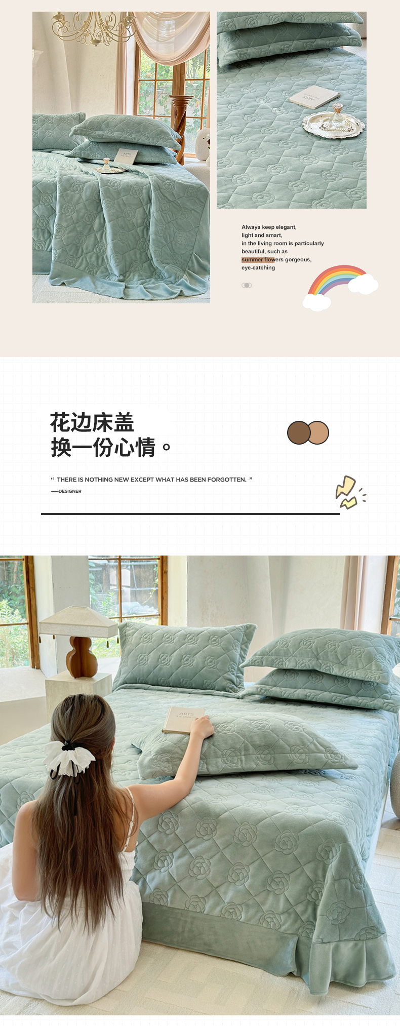 商品名称:7V 2025新款牛奶绒床盖 雾绿