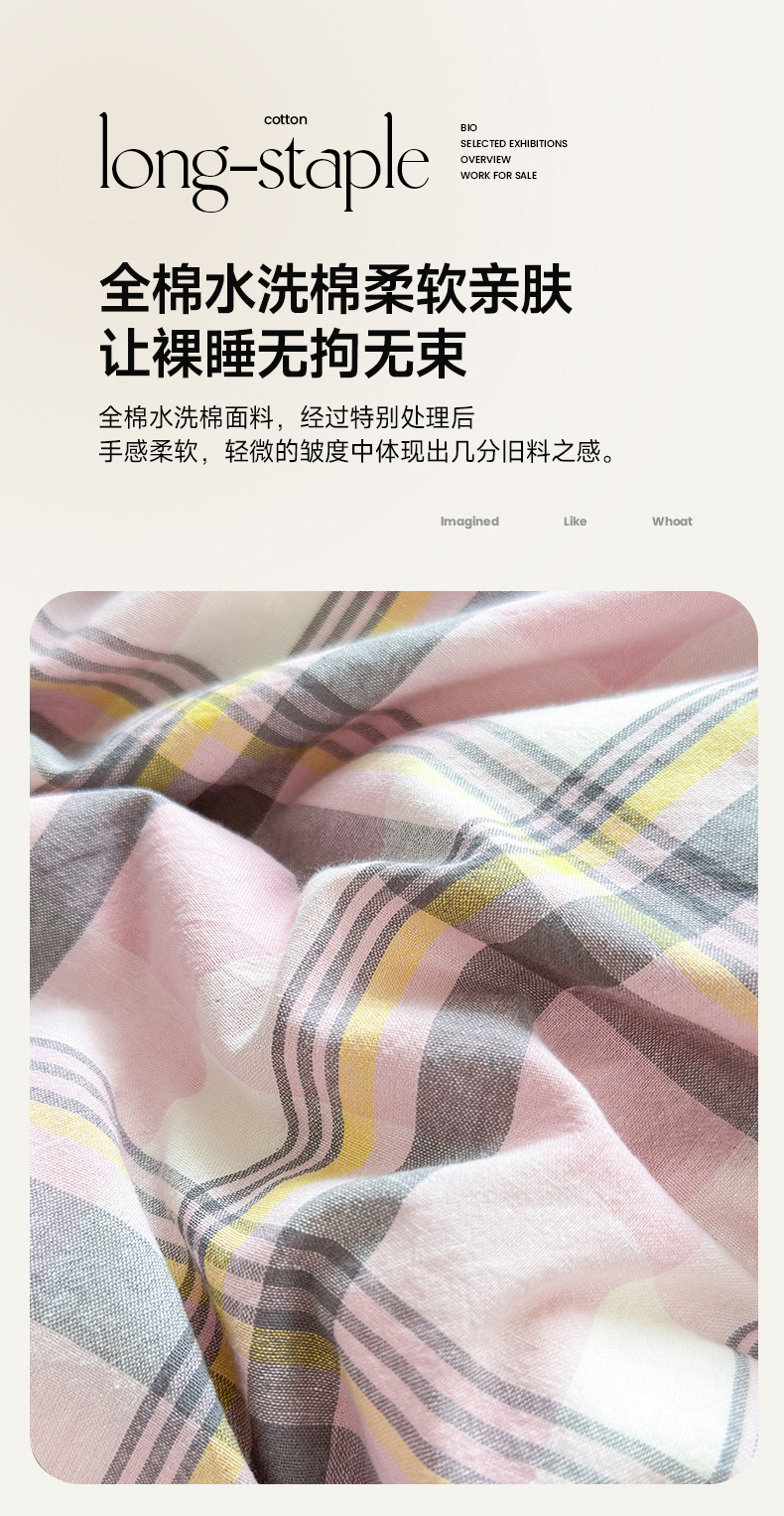 当前位置: 91家纺网 > 商品网购 > 床品套件 > 四件套 > 水洗棉四件套 > 宜家坊 2025新款A类全棉纯棉色织水洗棉宽边断角工艺四件套 可定制尺寸 幸福恋曲-粉