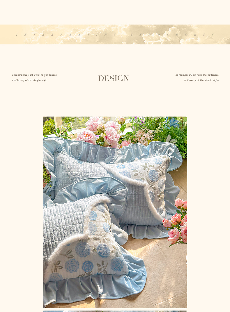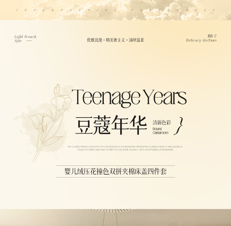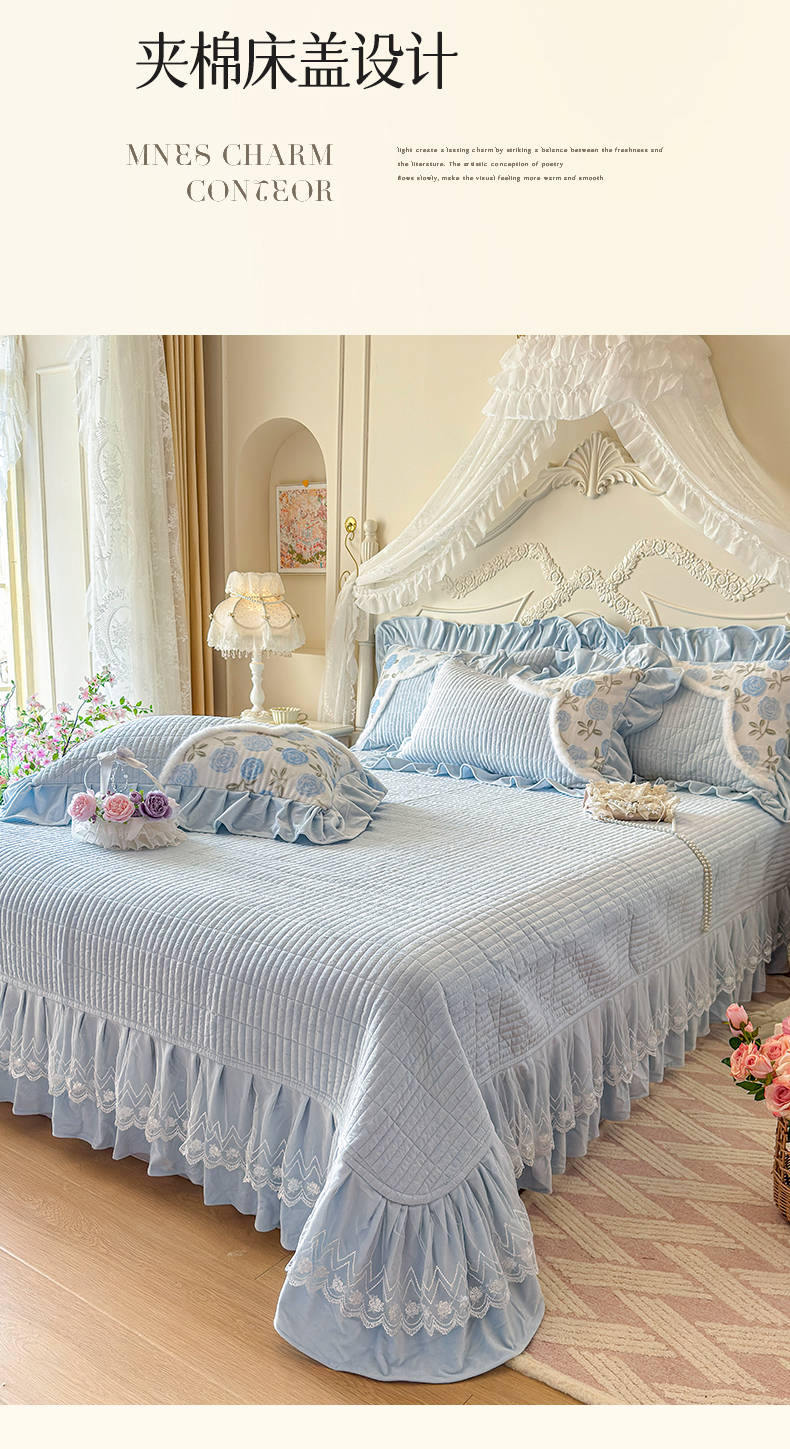 宜凡家纺 2025新款婴儿绒压花撞色双拼夹棉床盖四件套 床盖款-予花