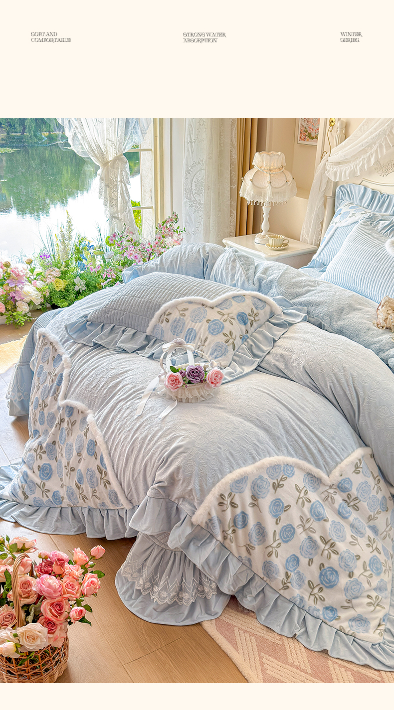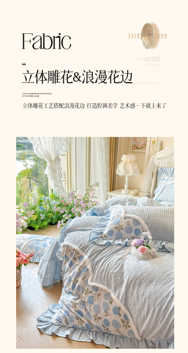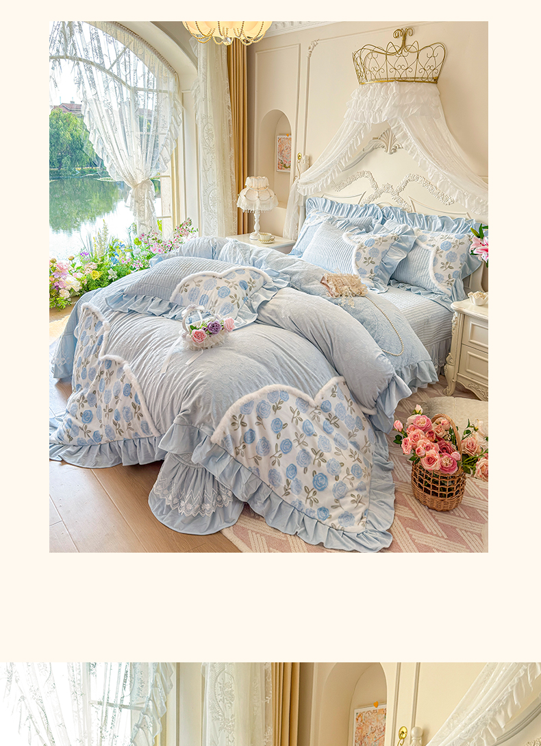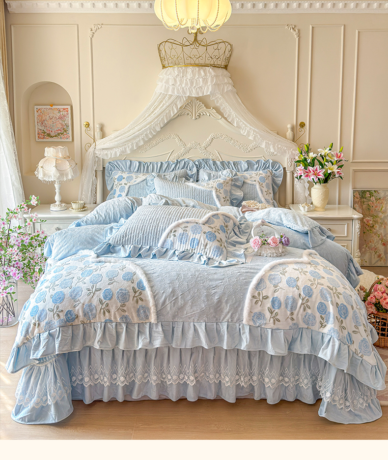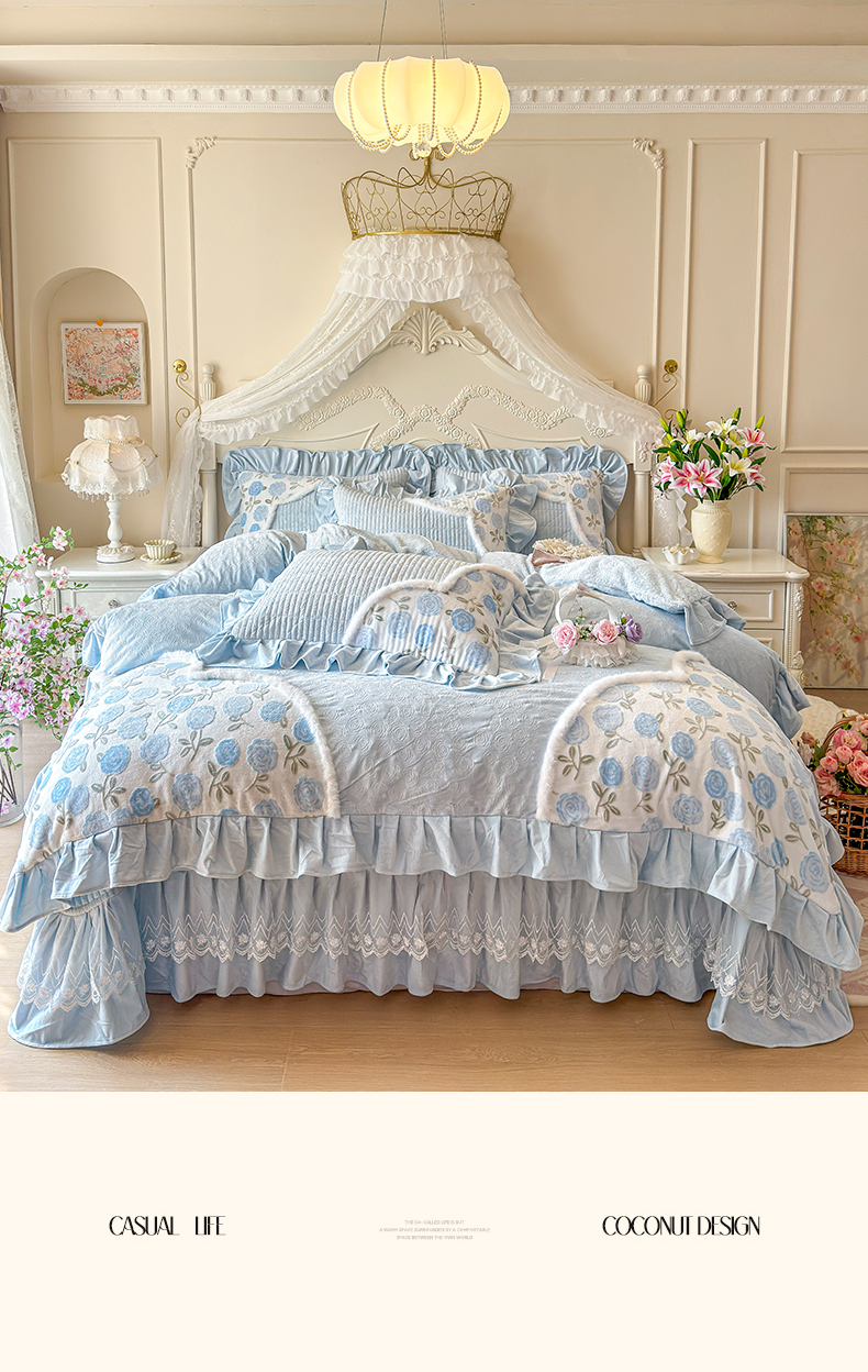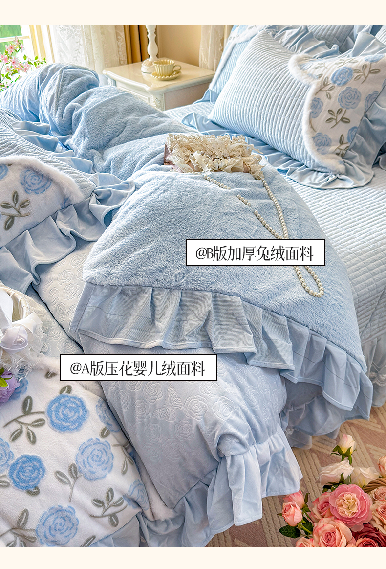 (总)宜凡家纺 2025新款兔绒提花牛奶绒夹棉床裙四件套,爱心 少女粉,爱心 粉紫,爱心 驼色,蝶舞 大红,蝶舞 米色,蝶舞 浅紫,蝶舞 玉色,简爱 苍青,简爱 豆沙紫,简爱 玉色,樱桃 苍青,樱桃 豆沙紫,樱桃 奶油白