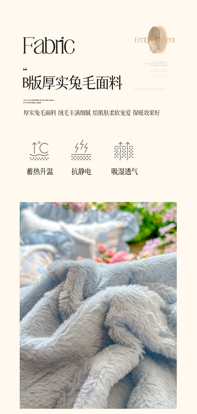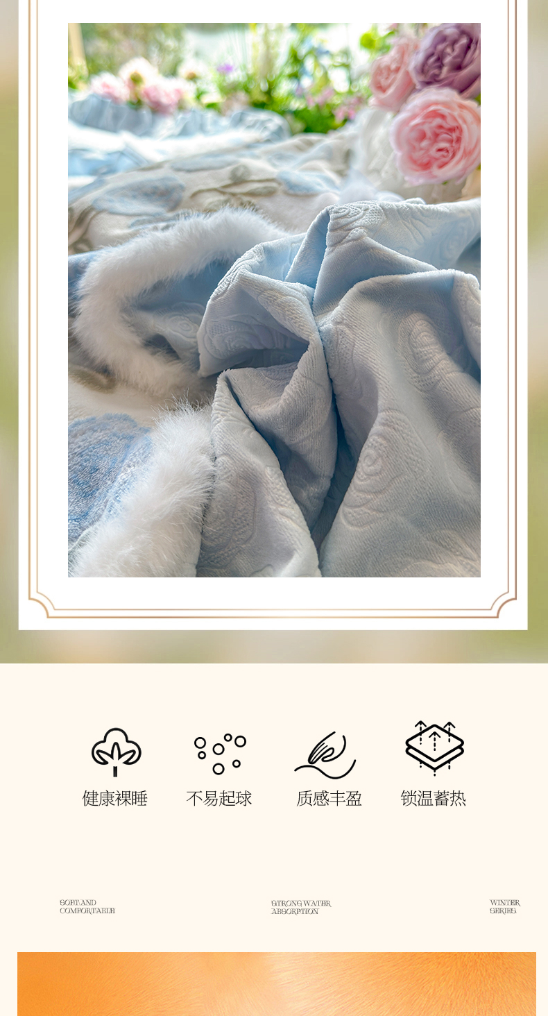 商品名称:宜凡家纺 2025新款婴儿绒压花撞色双拼夹棉床盖四件套 床盖款-予花