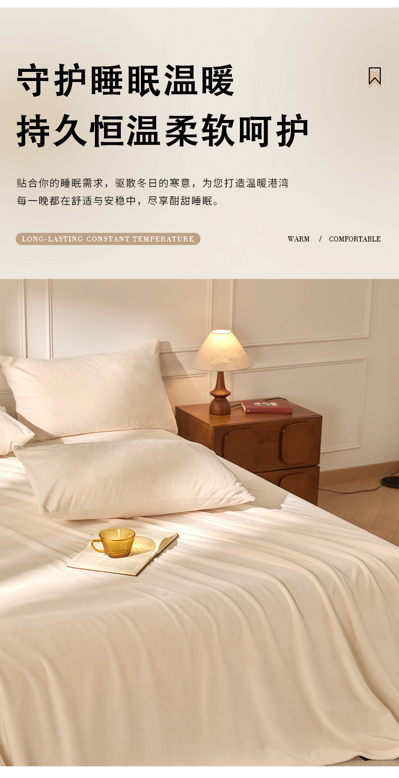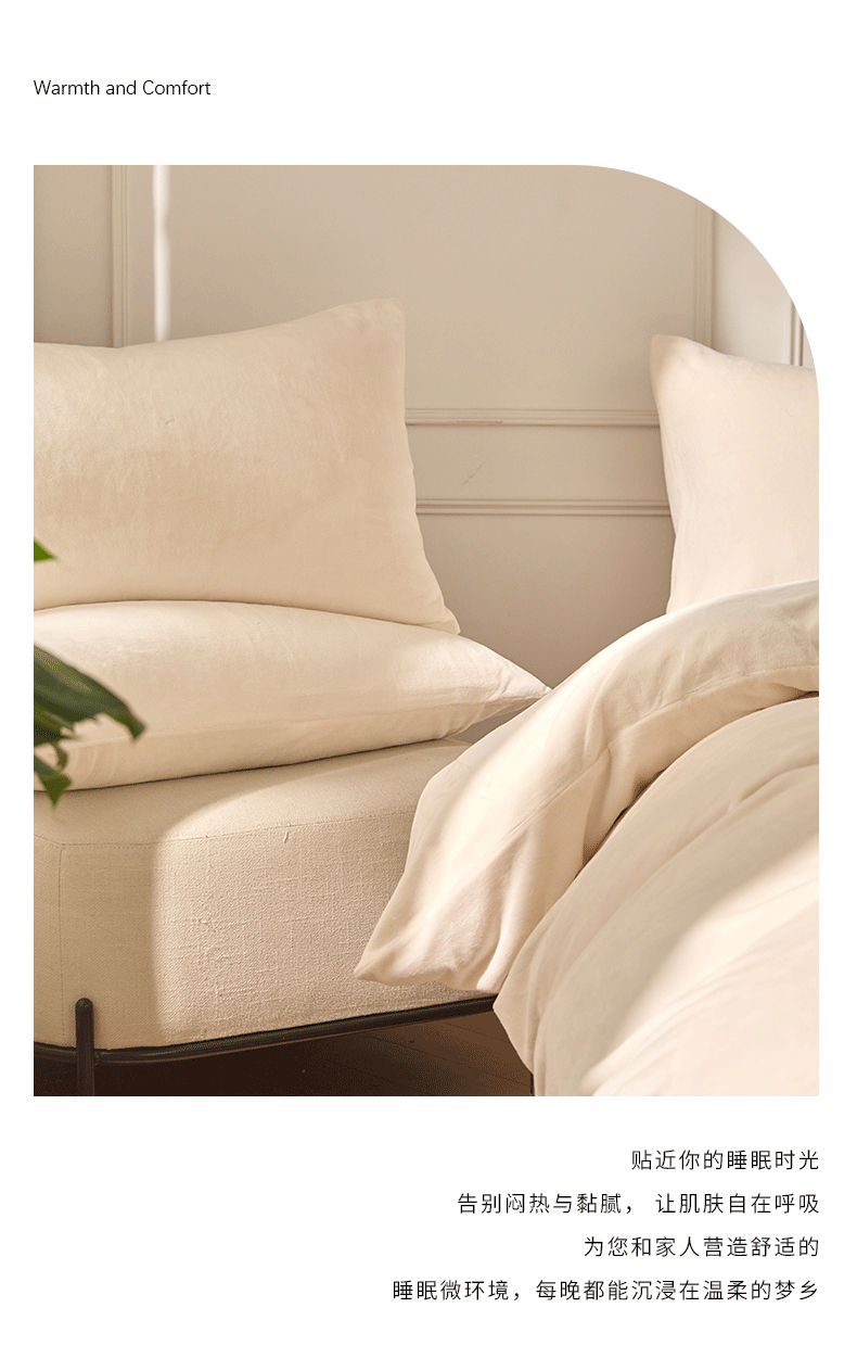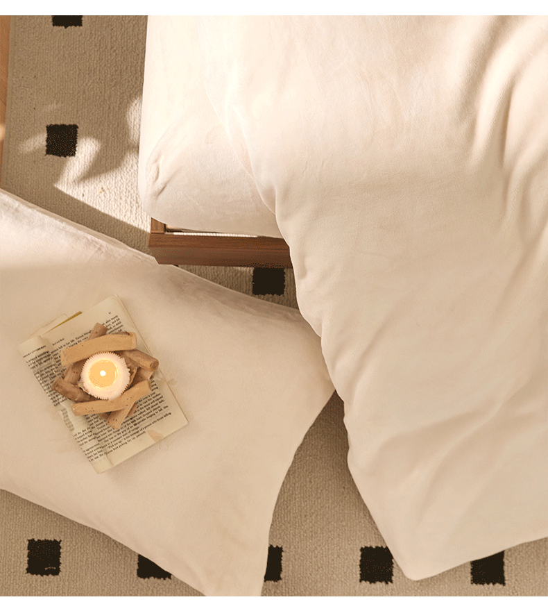 商品名称:618家纺 2025新款樱花绒单品四件套系列-单枕套 奶白