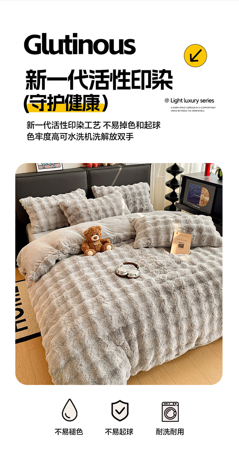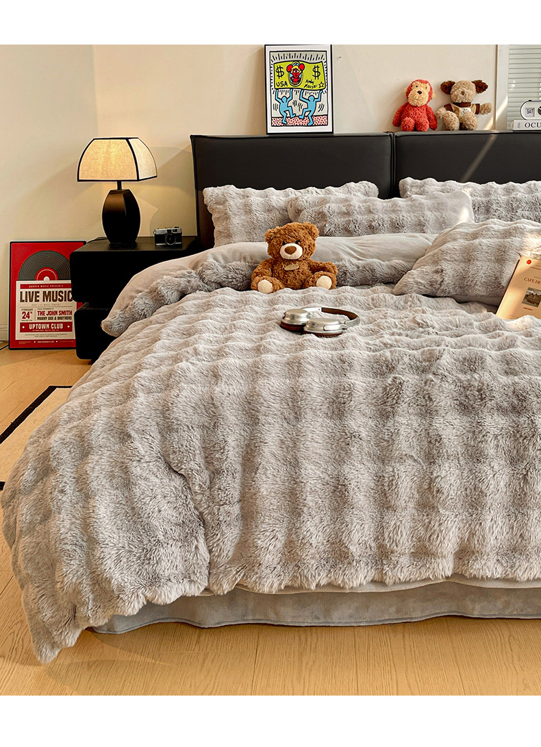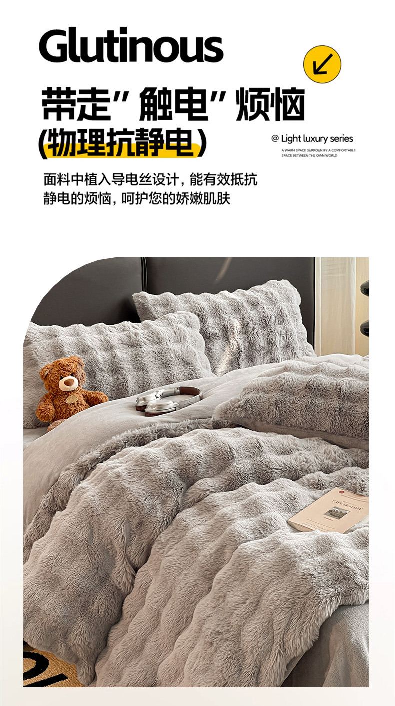 商品名称:凯洛奇 2025新款兔毛绒四件套牛奶绒四件套大泡泡兔毛四件套 月光灰