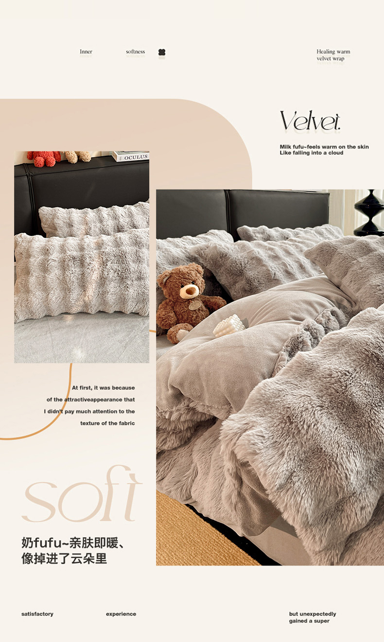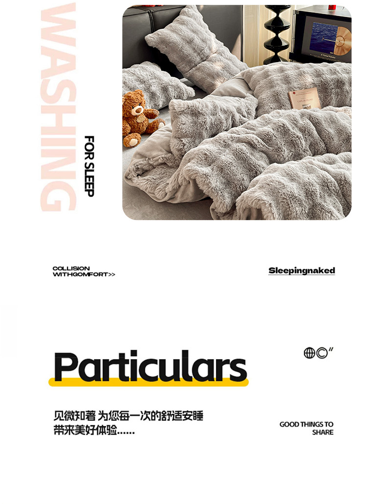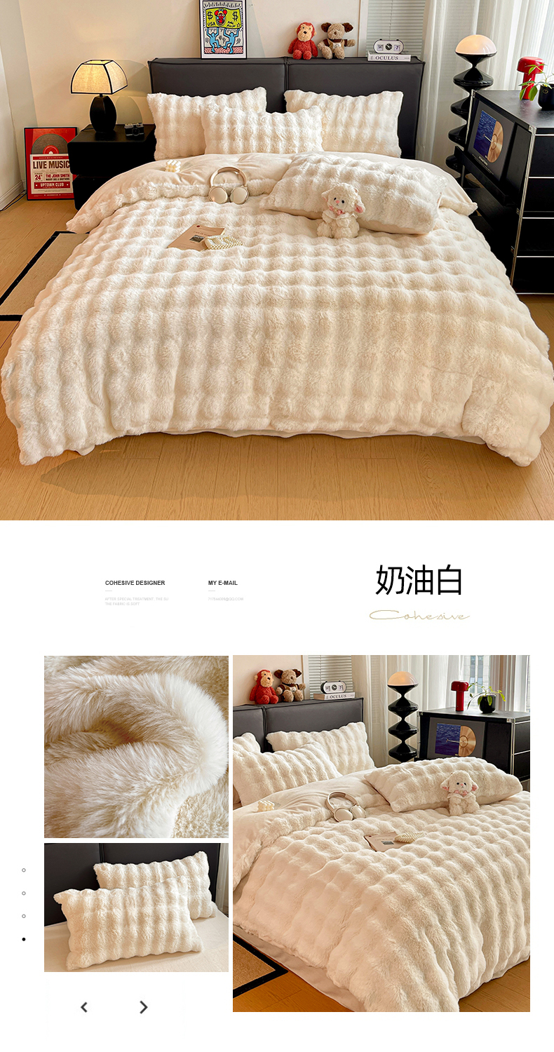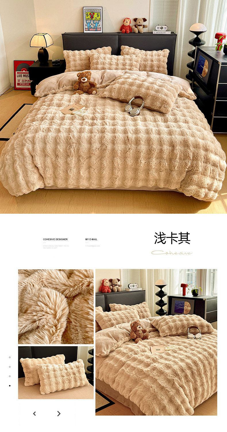商品名称:凯洛奇 2025新款兔毛绒四件套牛奶绒四件套大泡泡兔毛四件套 月光灰