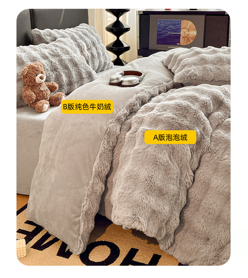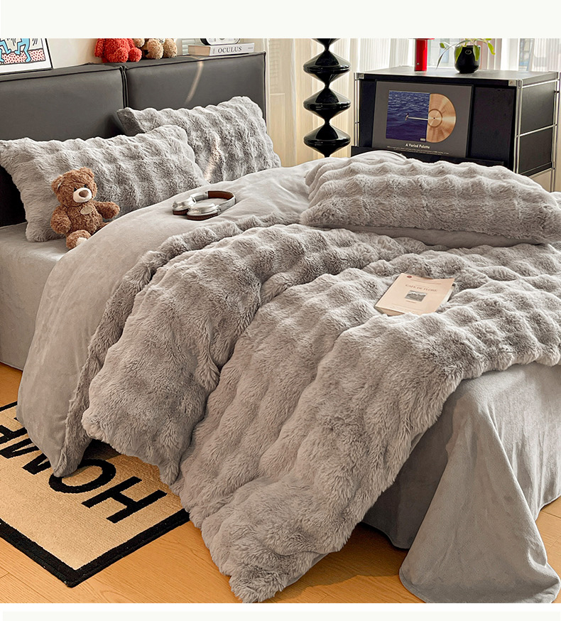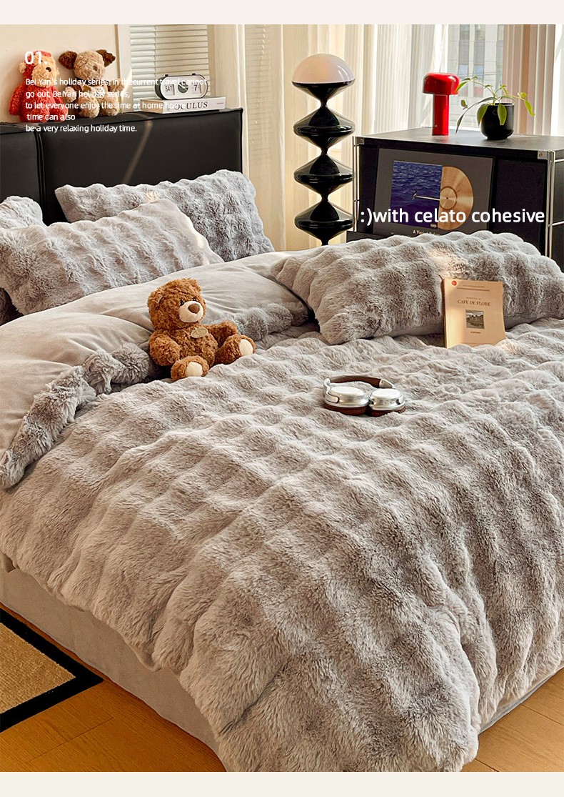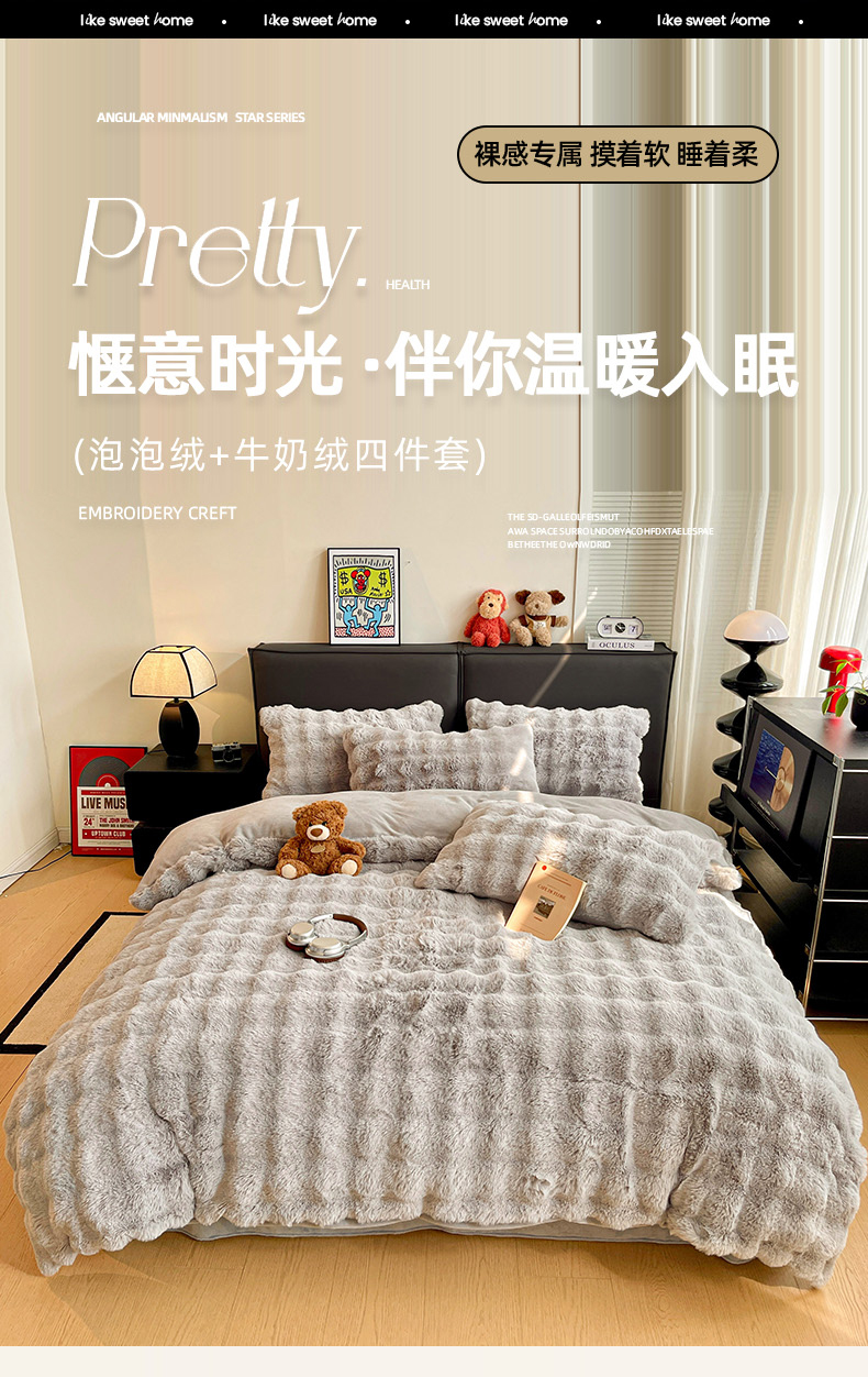 凯洛奇 2025新款兔毛绒四件套牛奶绒四件套大泡泡兔毛四件套 月光灰