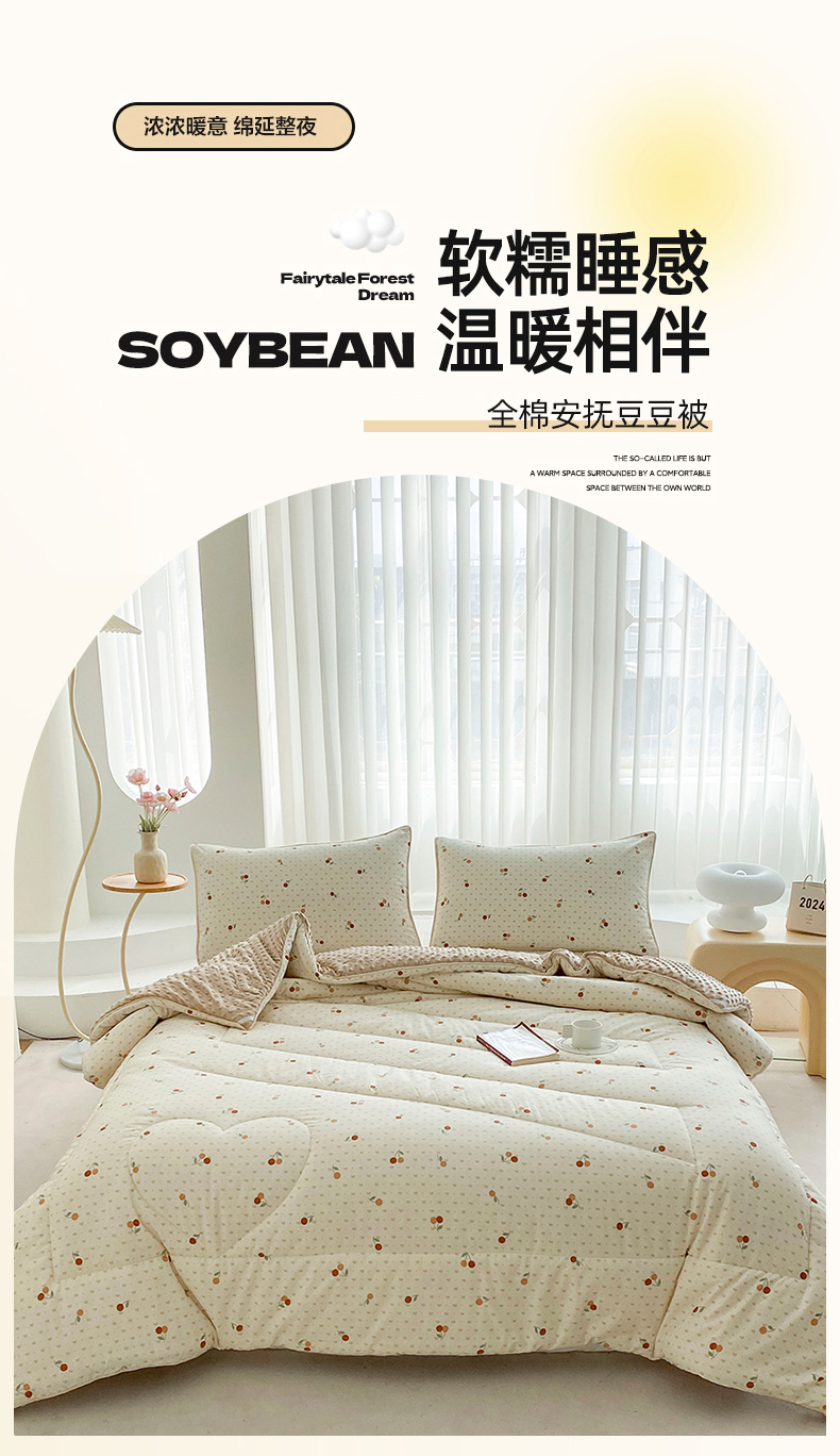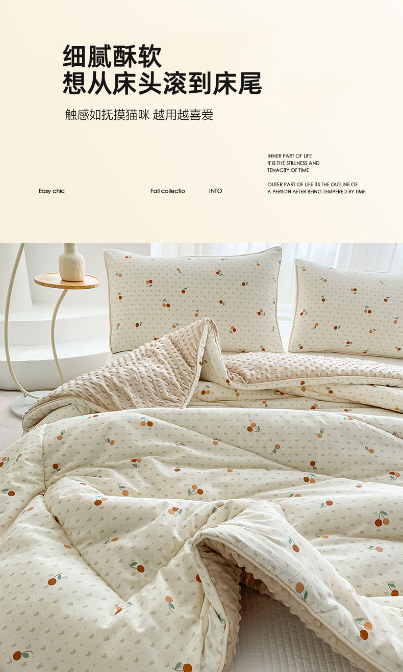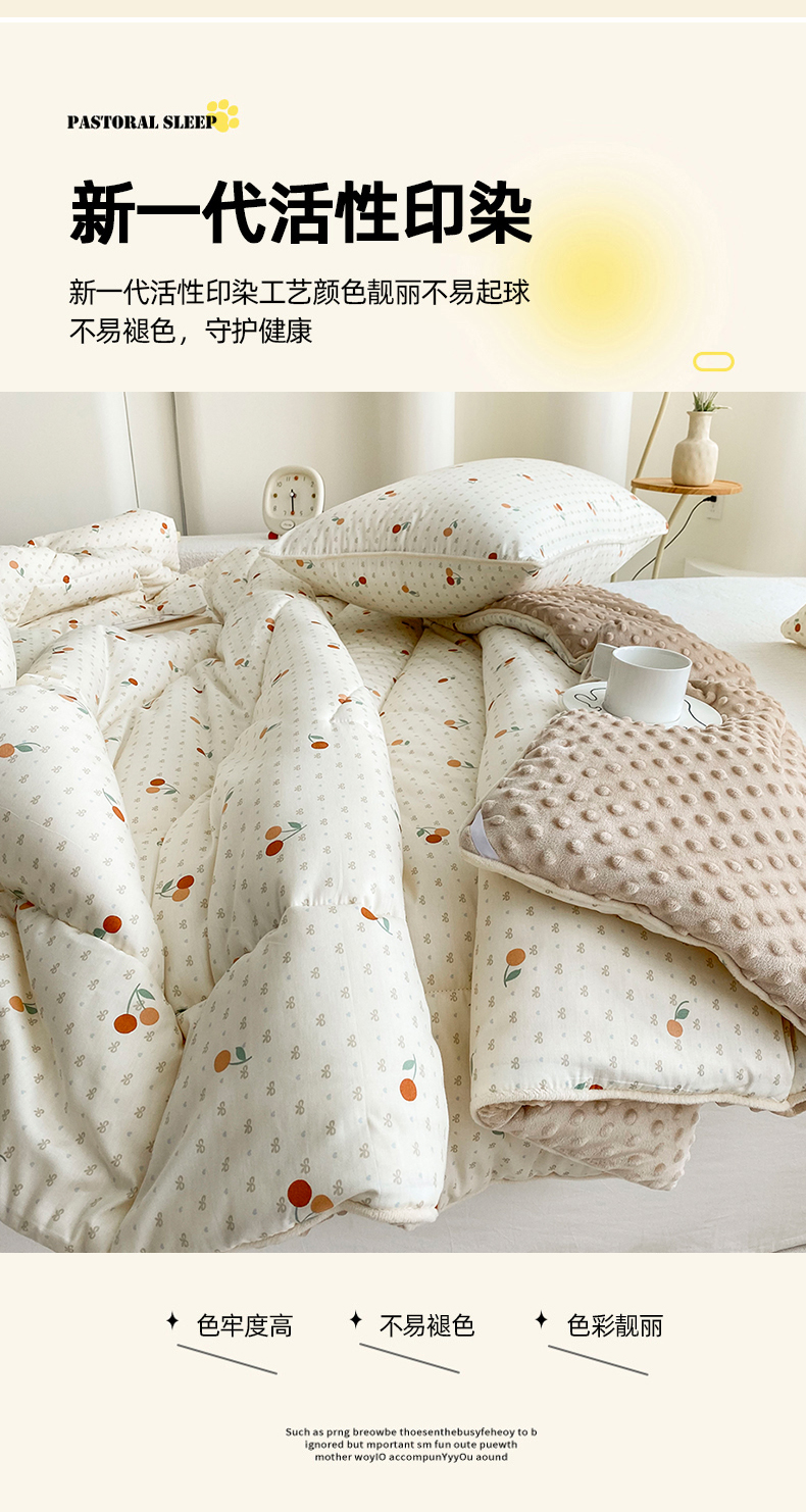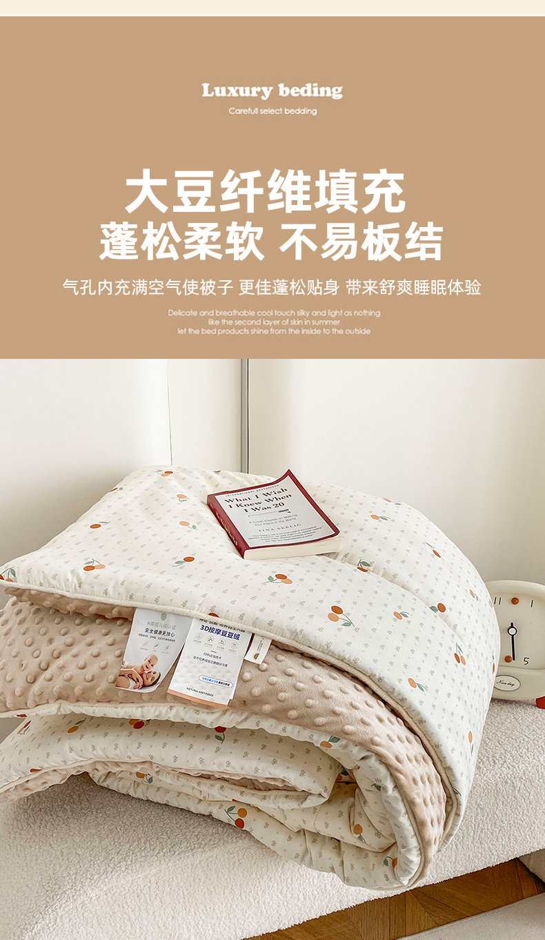 商品名称:青螺家纺 2025新款高密全棉嵌绳宝宝绒春秋豆豆被 支持定制花色和冬被 有量来门市优惠 小樱桃