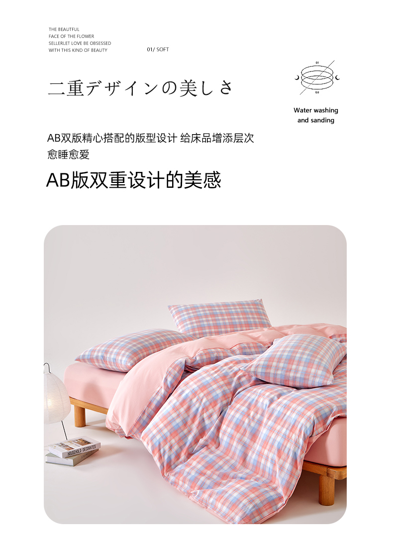 当前位置: 91家纺网 > 商品网购 > 床品套件 > 四件套 > 水洗棉四件套 > 九沐良品 2025新款全棉色织水洗棉无印风四件套 星空粉