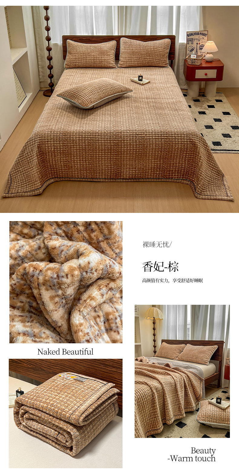 • 91家纺网 家纺一手货源 找家纺 芷卧 2025新款小香风牛奶绒床盖三件套 香妃-棕