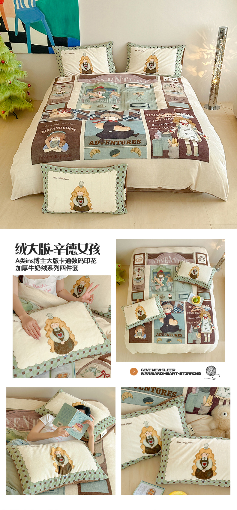 (总)桃子家居 2025新款A类高级仿生绵羊绒兔毛贴布绣刺绣工艺卡通少女加厚牛奶绒系列四件套,绵羊绒-冬日熊,绵羊绒-狗狗伙伴,绵羊绒-蓝条咖啡狗,绵羊绒-毛球猫咪,绵羊绒-圣诞小狗,绵羊绒-星星人