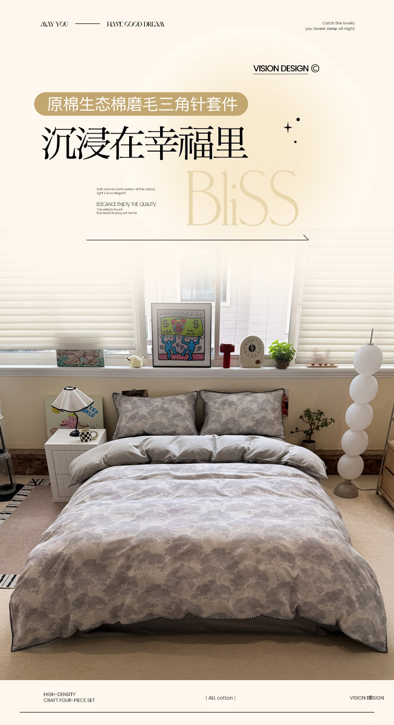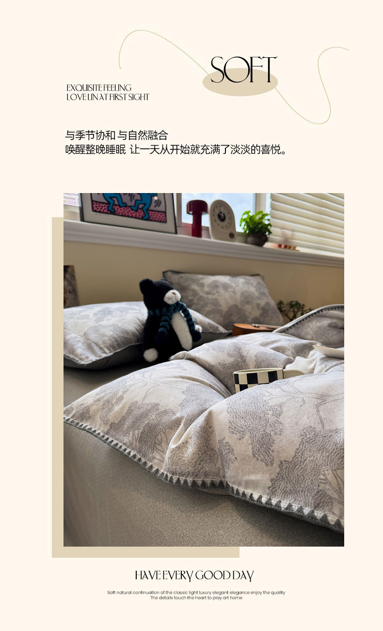 当前位置: 91家纺网 > 商品网购 > 床品套件 > 四件套 > 普通磨毛四件套 > 慕尚家纺 2025新款磨毛三角针套件四件套 磨毛三角针-发财树