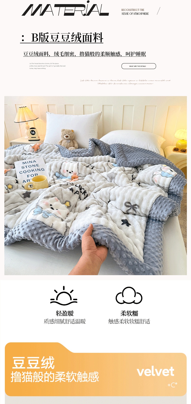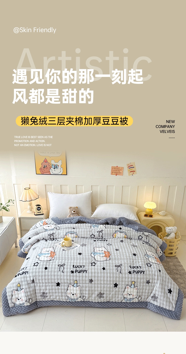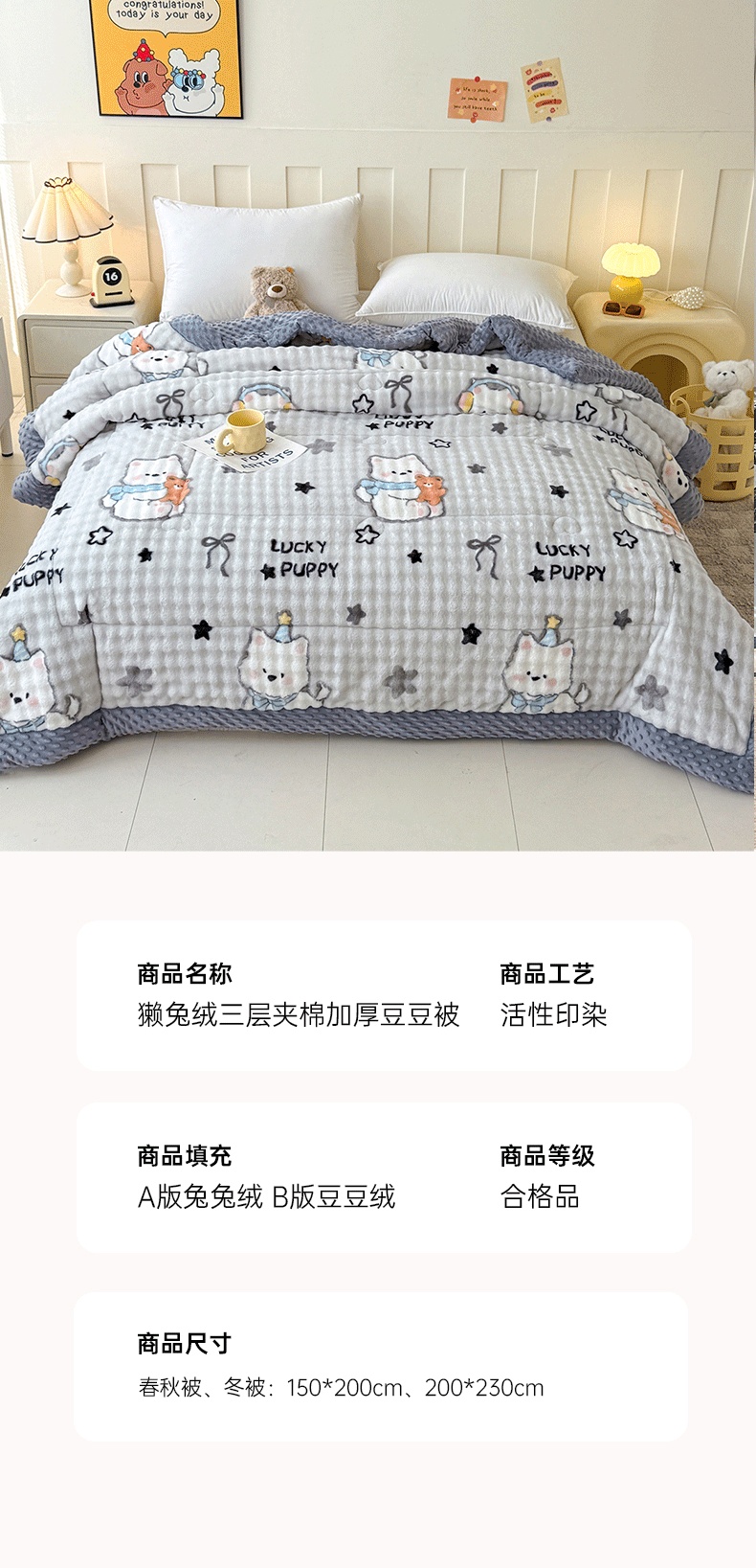 商品名称:(总)宜梦家居 2025新款獭兔绒三层夹棉加厚豆豆棉被子被芯