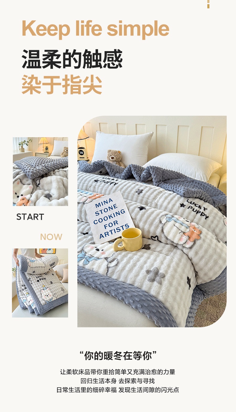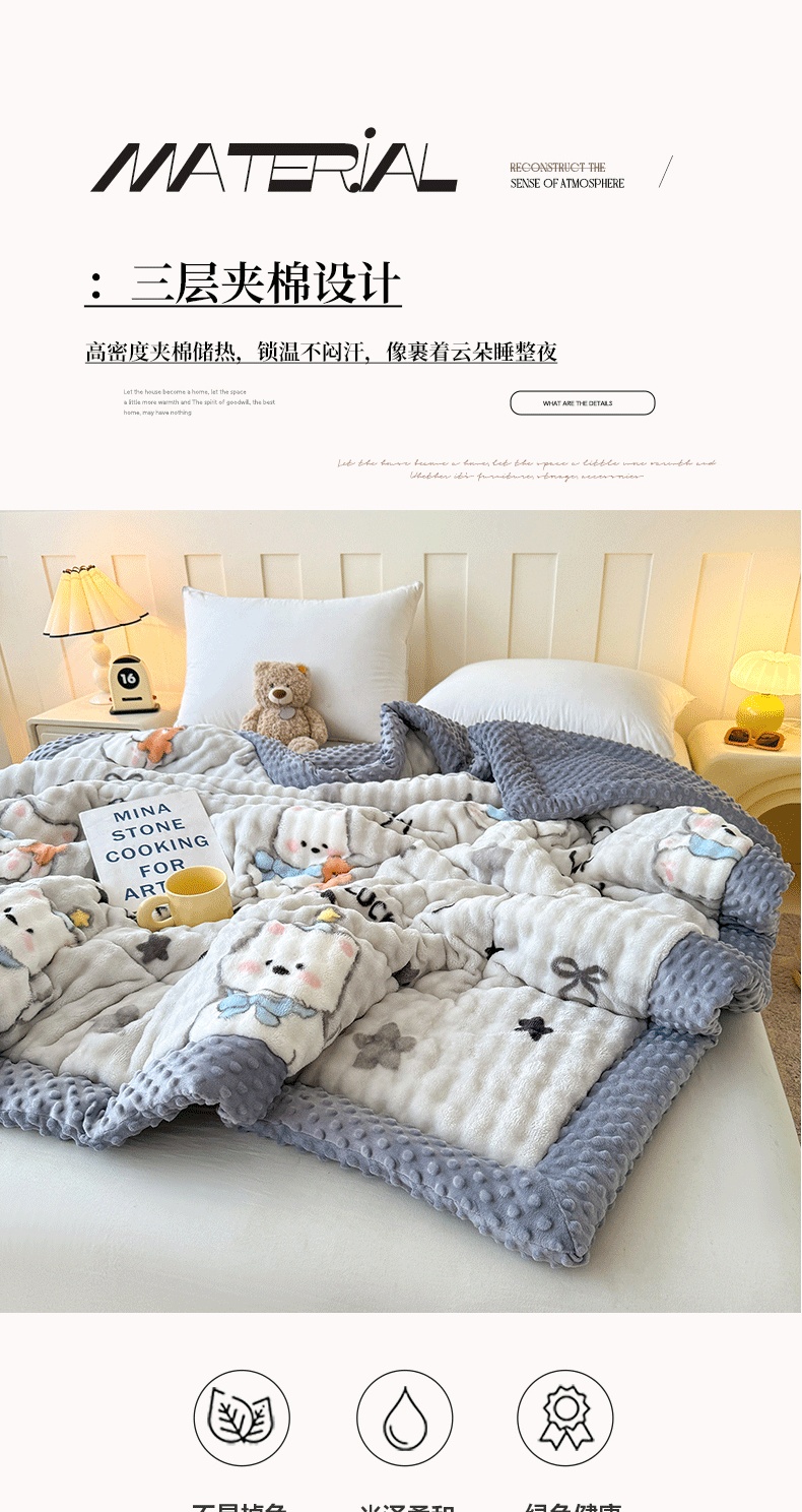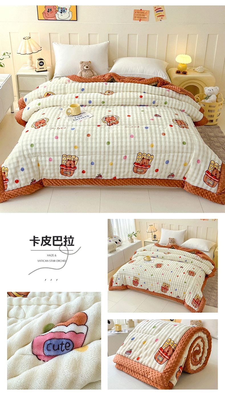 (总)宜梦家居 2025新款獭兔绒三层夹棉加厚豆豆棉被子被芯,抱抱熊,蛋糕猫,蝴蝶,花草狗,卡皮巴拉,蓝狗,蓝色动物,美乐蒂,奶牛,南瓜,星月,熊猫,郁金香,紫花