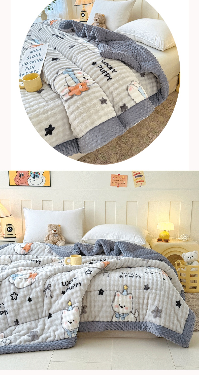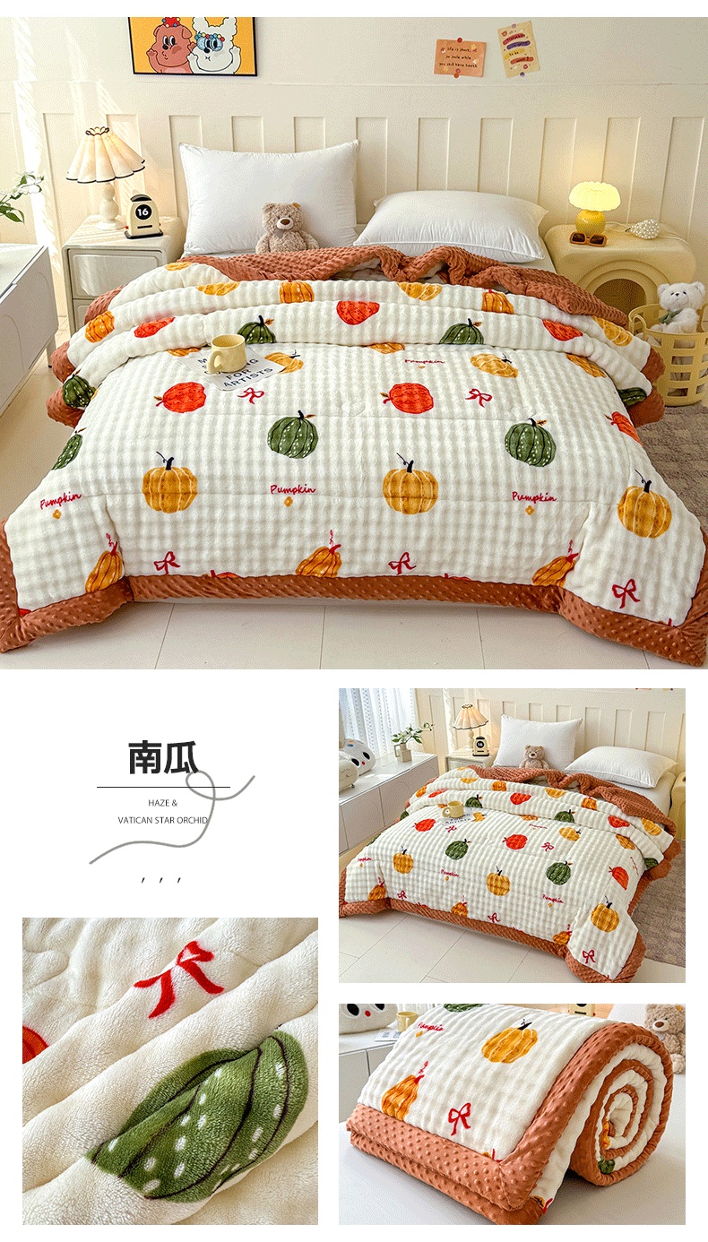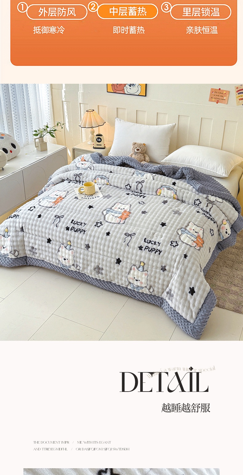 (总)宜梦家居 2025新款獭兔绒三层夹棉加厚豆豆棉被子被芯,抱抱熊,蛋糕猫,蝴蝶,花草狗,卡皮巴拉,蓝狗,蓝色动物,美乐蒂,奶牛,南瓜,星月,熊猫,郁金香,紫花