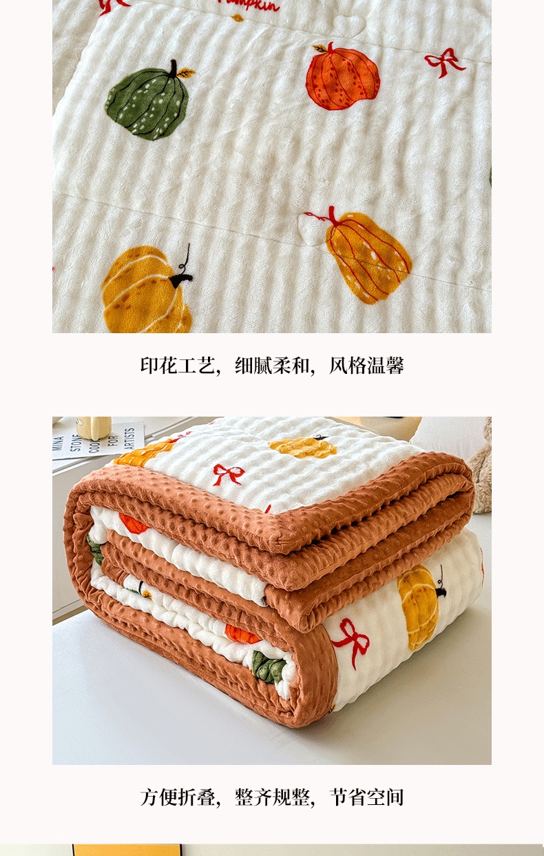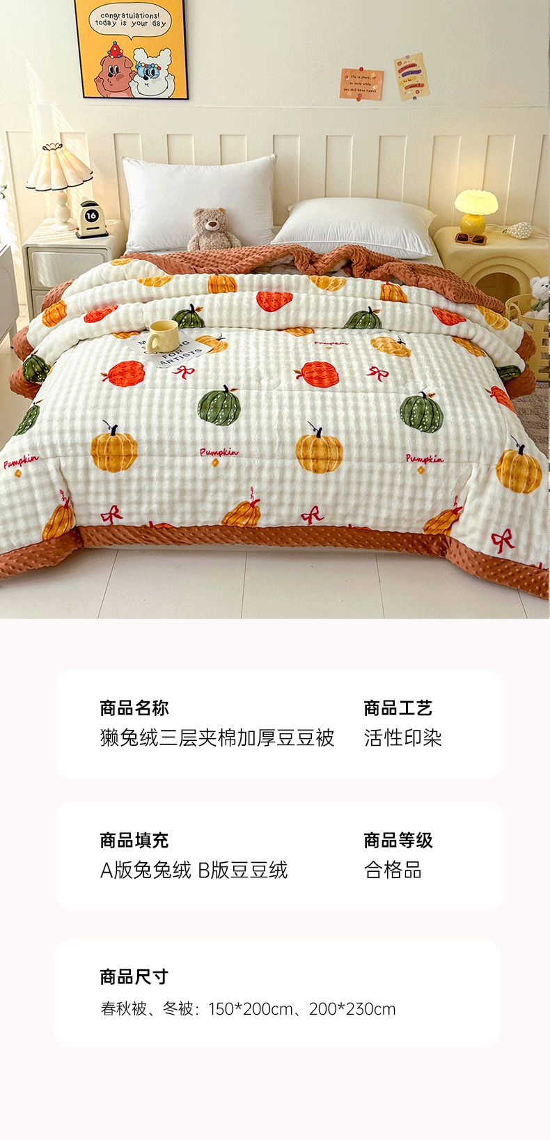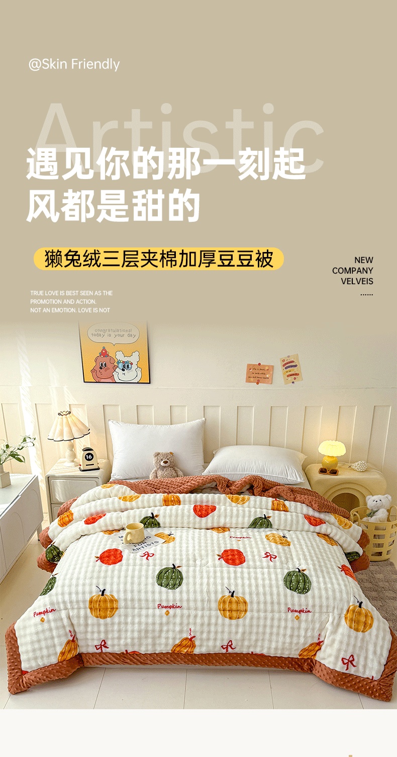 商品名称:宜梦家居 2025新款獭兔绒三层夹棉加厚豆豆棉被子被芯 南瓜