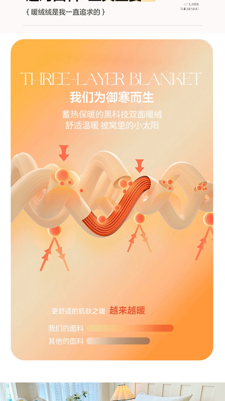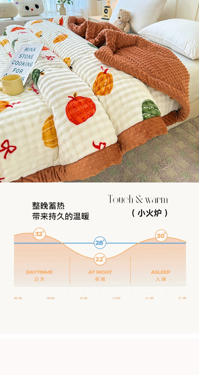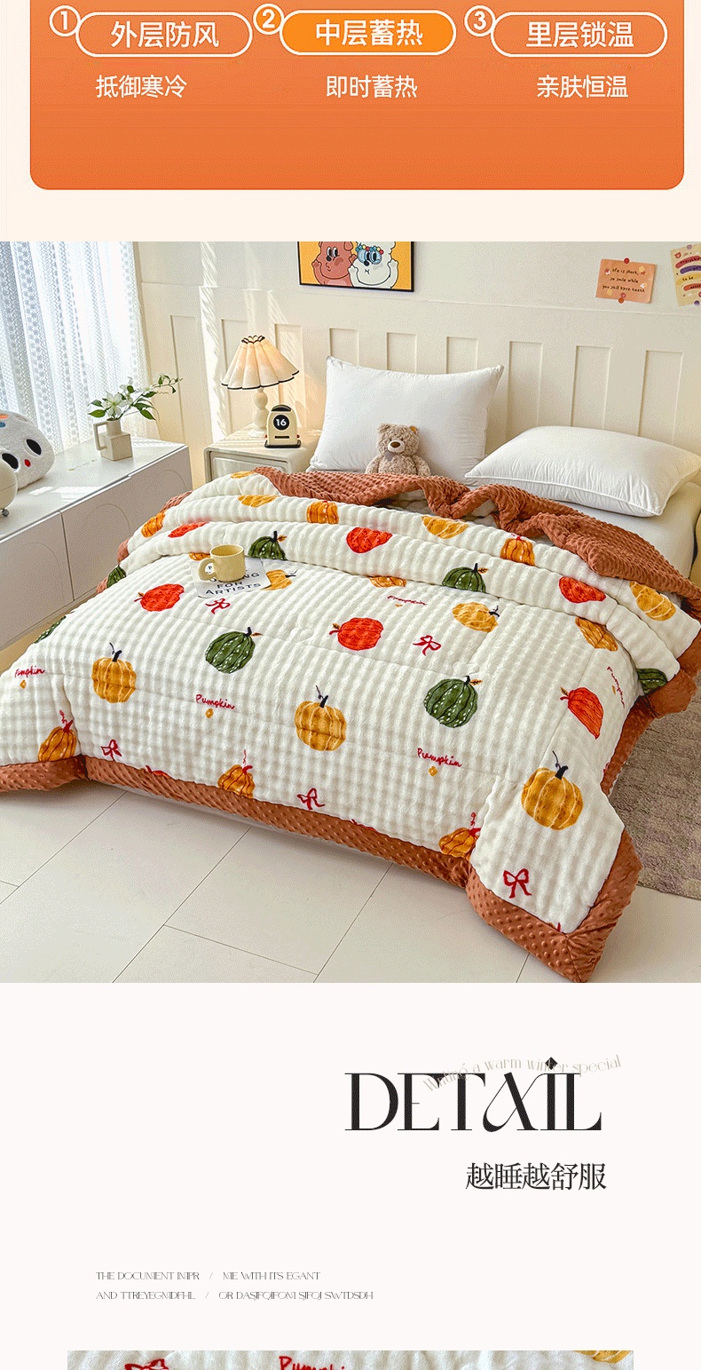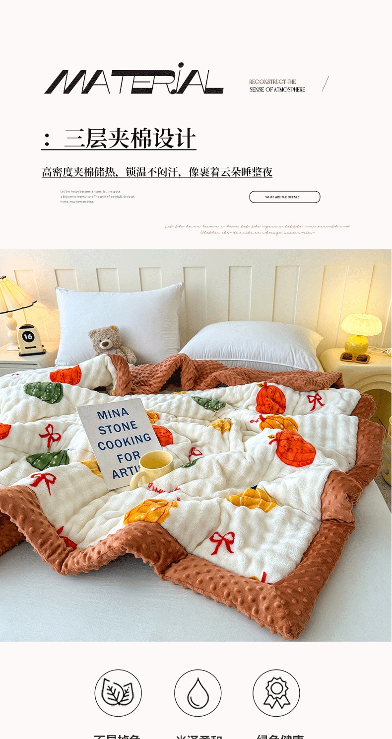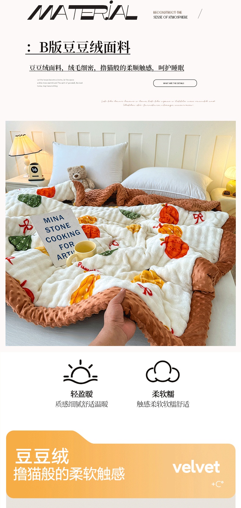 宜梦家居 2025新款獭兔绒三层夹棉加厚豆豆棉被子被芯 南瓜