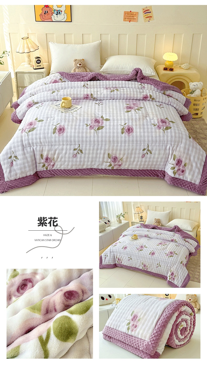 总 宜梦家居【需要买家秀请联系老板】 2025新款A类纯棉婴儿绒豆豆被四季夏凉春秋被子冬被芯,青春绽放,幸运兔,法式玫瑰,复古琉璃,好多鱼,郁金香-紫,月满西楼
