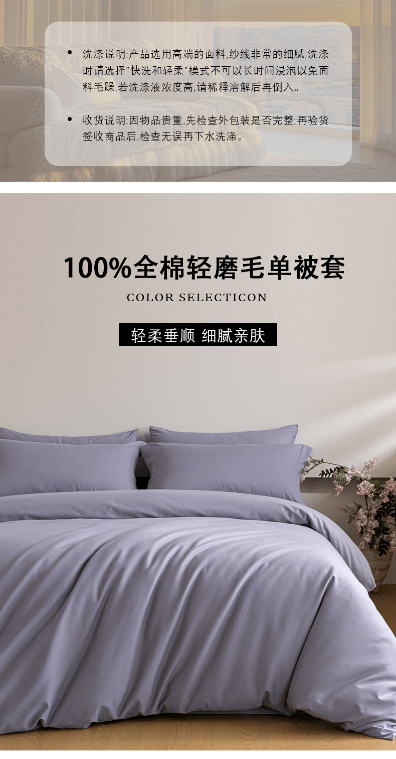 商品名称:618家纺 2025新款全棉100支磨毛单品四件套系列-单被套 紫灰