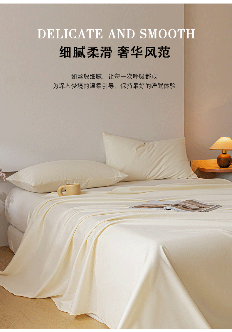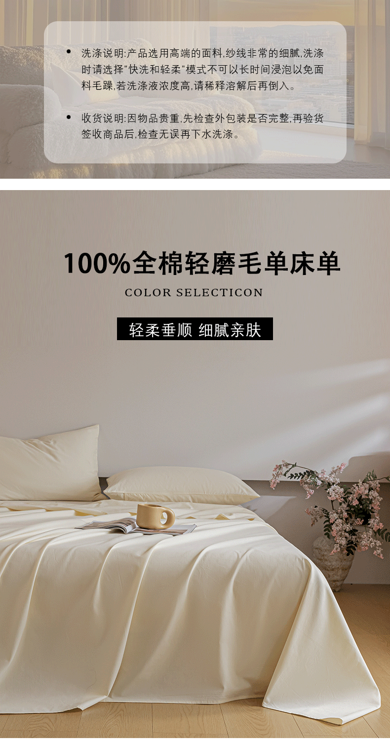 商品名称:618家纺 2025新款全棉100支磨毛单品四件套系列-单床单 元气白桃
