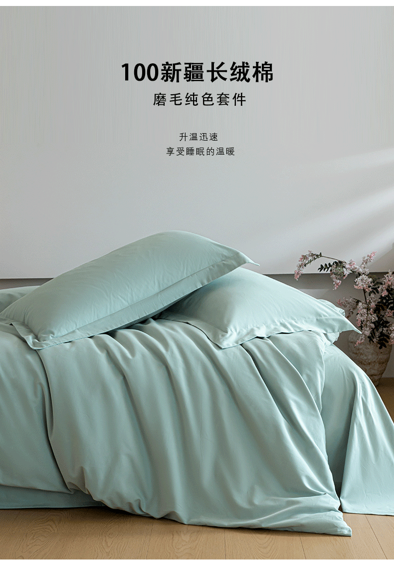 商品名称:618家纺 2025新款全棉100支磨毛单品四件套系列-单枕套 奶油绿