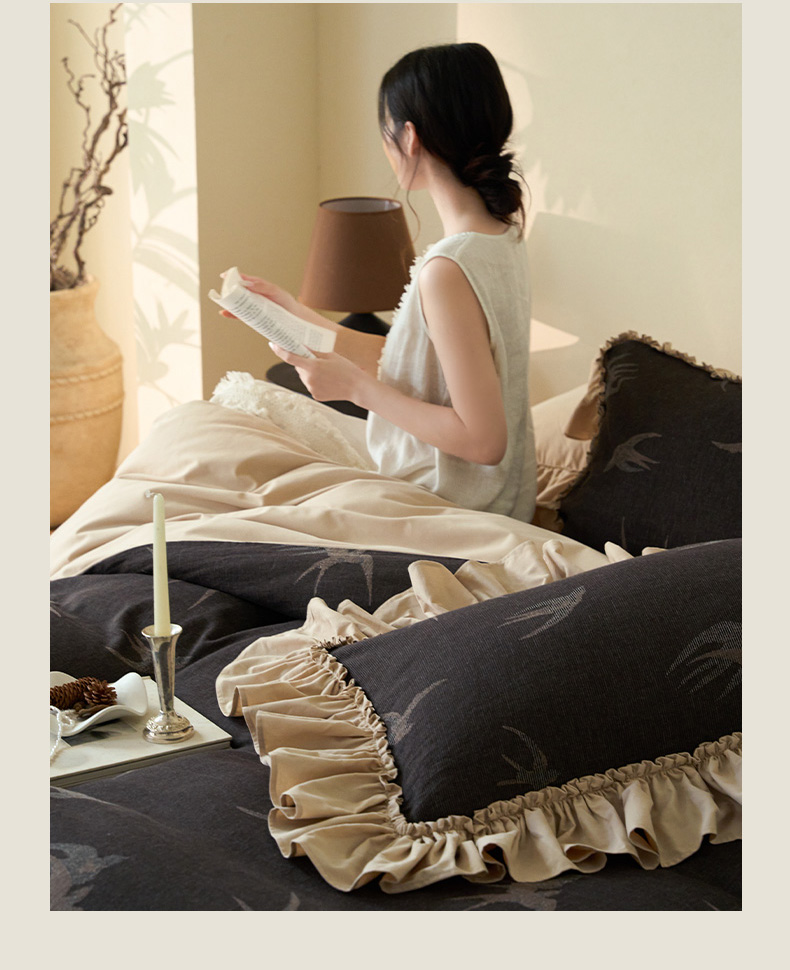 圆岛家纺 2025秋冬复古格调全棉纯棉色织提花磨毛四件套 晨露