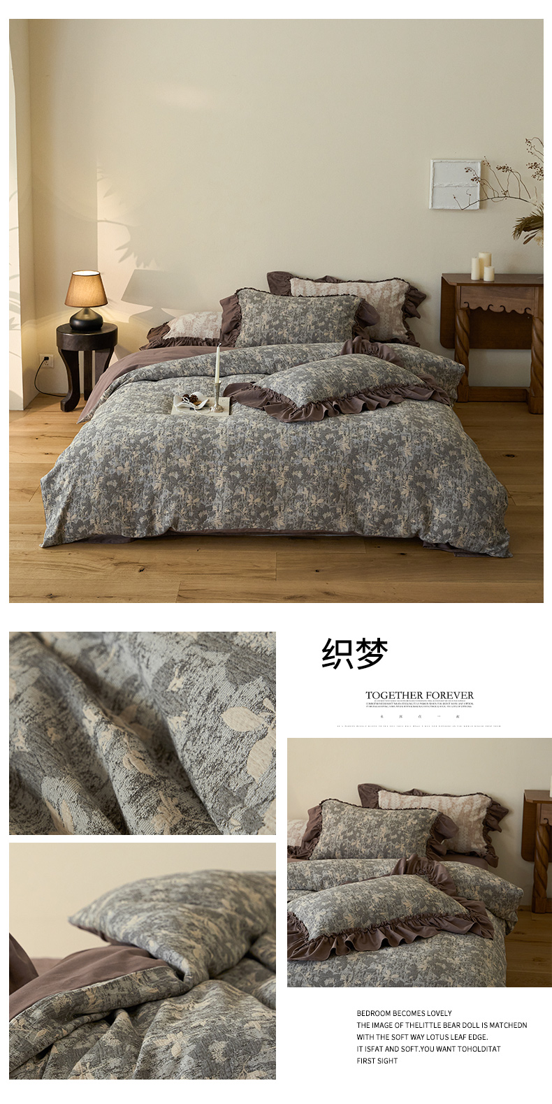 (总)圆岛家纺 2025秋冬复古格调全棉纯棉色织提花磨毛四件套,禅夜,晨露,森屿,新山,织梦
