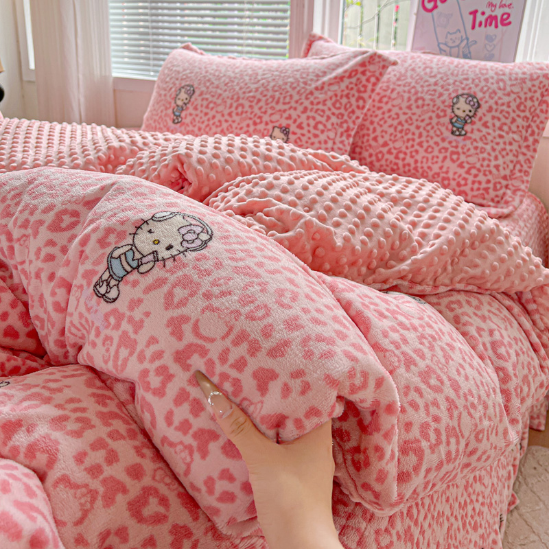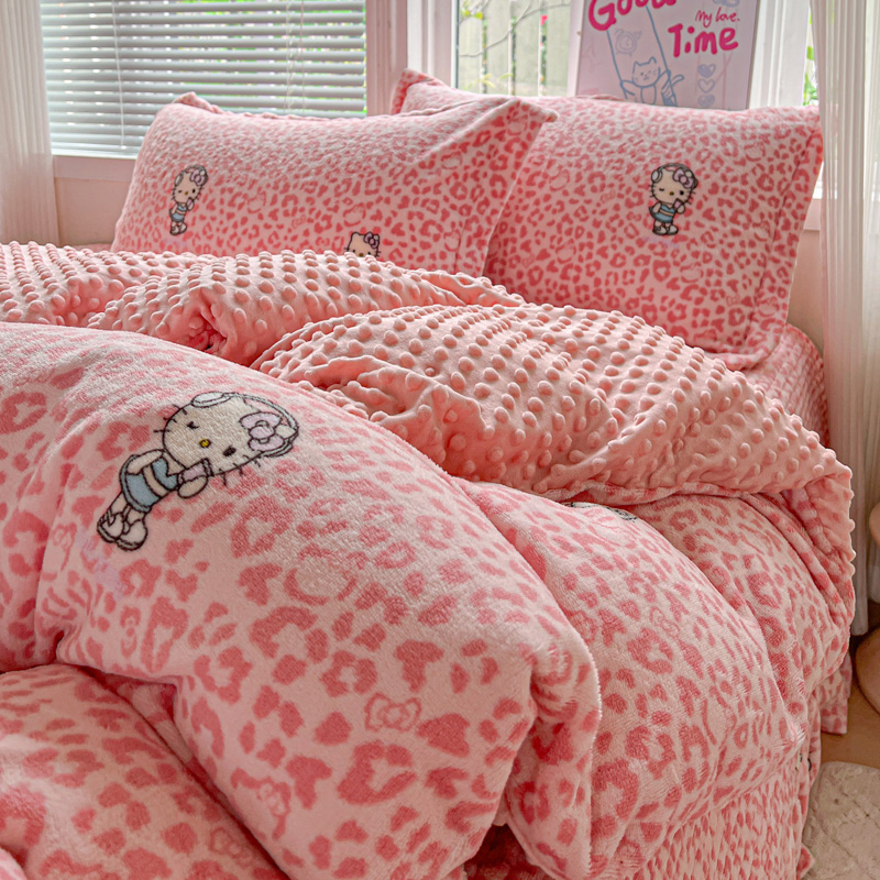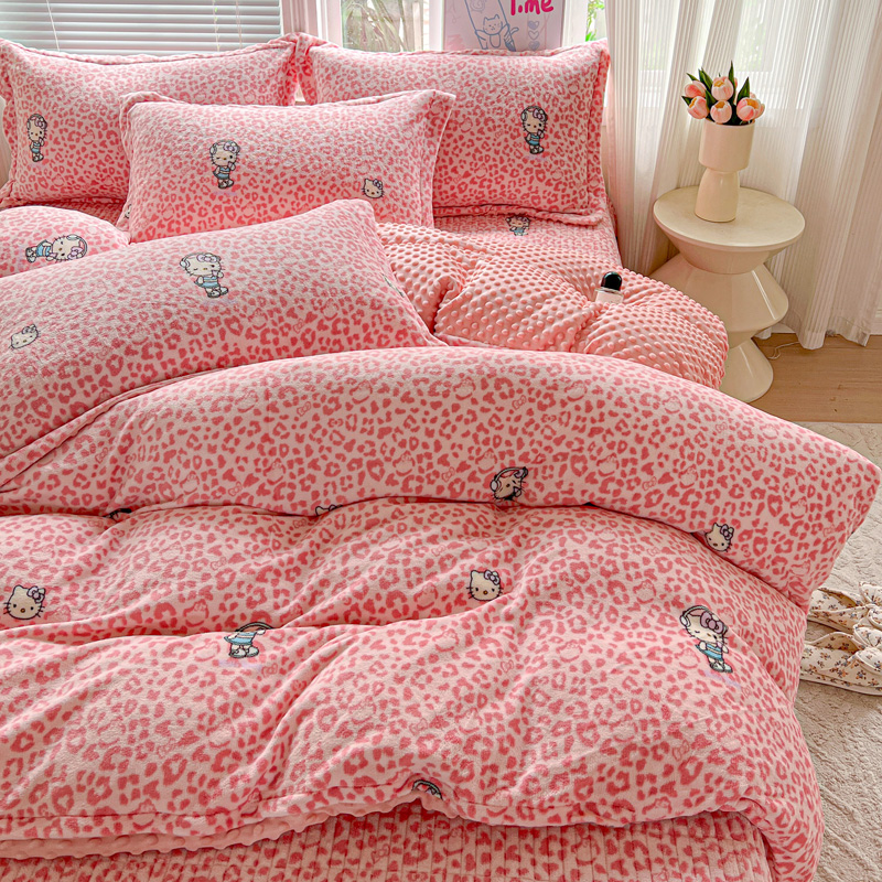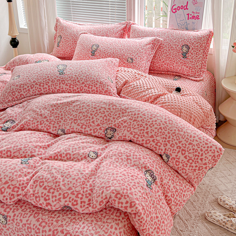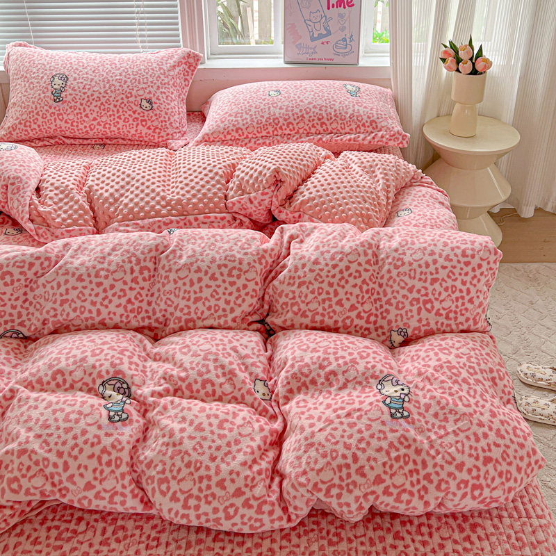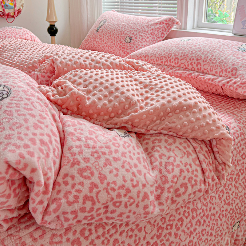 当前位置: 91家纺网 > 商品网购 > 床品套件 > 四件套 > 牛奶绒四件套 > 一比一 2025新款加厚保暖豆豆牛奶绒床盖款四件套豹纹KT - 粉