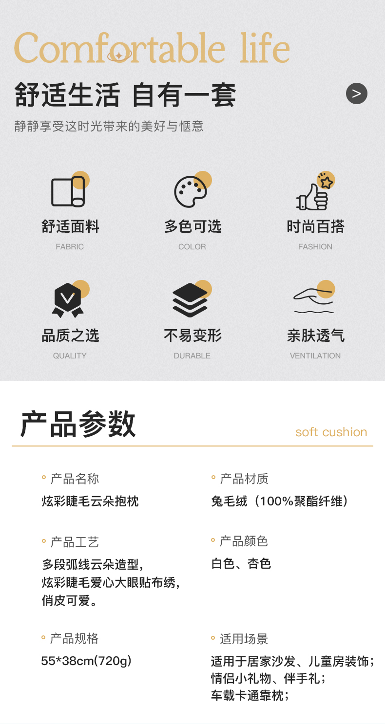 商品名称:(总)美茉家居 2025新款兔毛绒炫彩睫毛云朵抱枕
