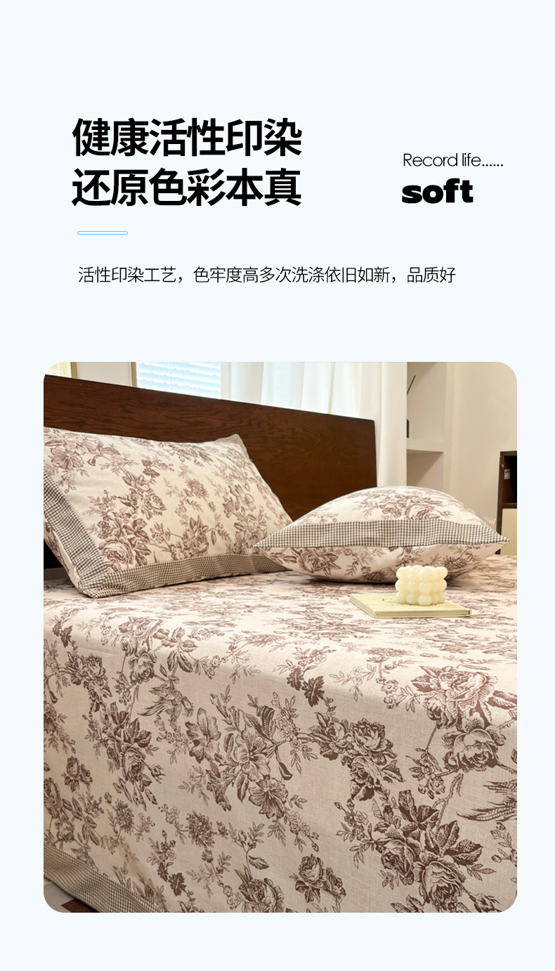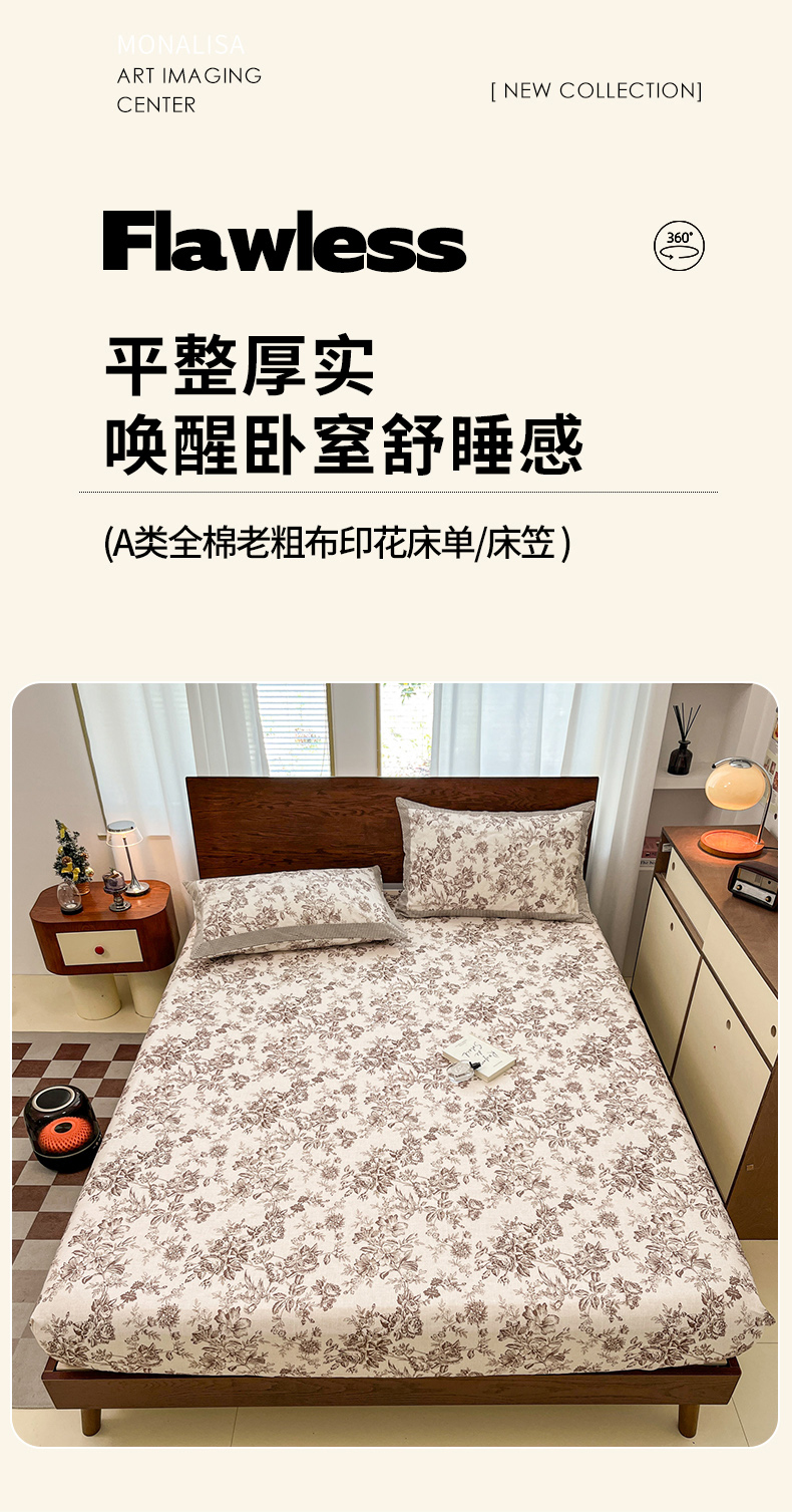 宜代光年 2025新款全棉老粗布数码印花拼角工艺床单床笠 床笠-花汀