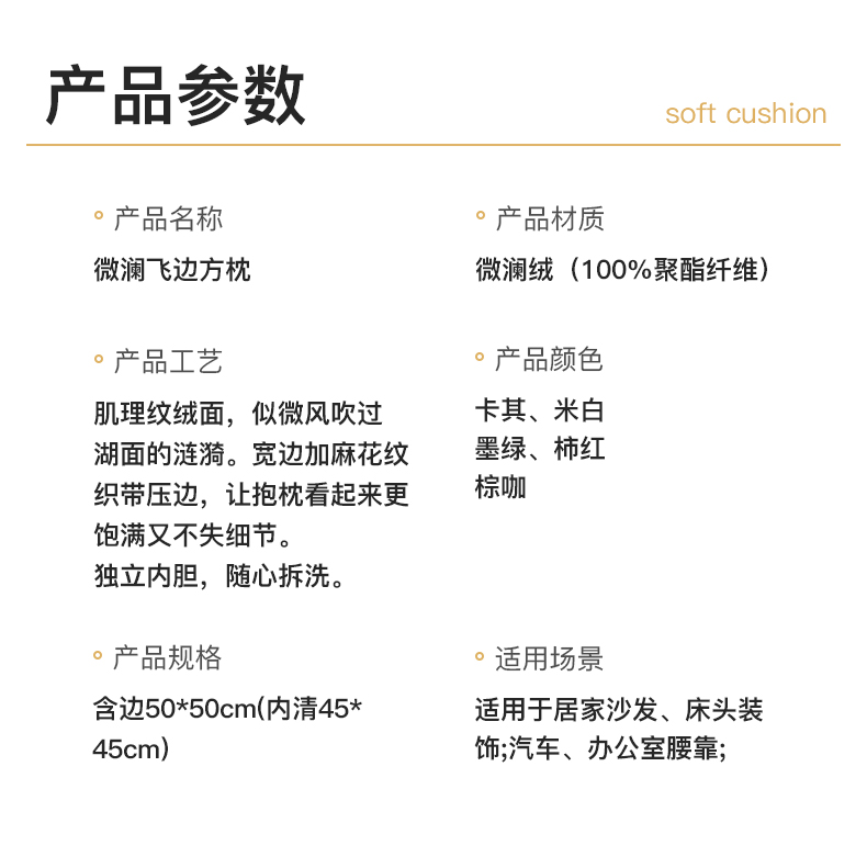 (总)美茉家居 2025新款微澜飞边方枕抱枕,卡其,米白,墨绿,柿红,棕咖