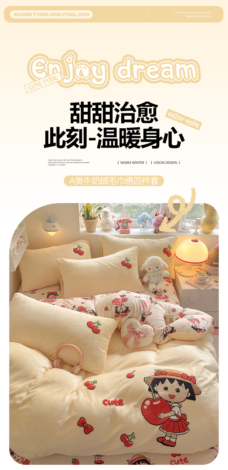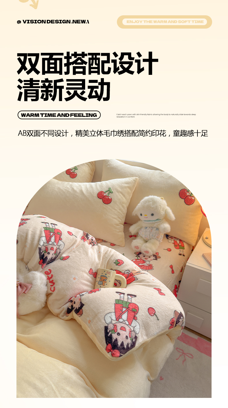 当前位置: 91家纺网 > 商品网购 > 床品套件 > 四件套 > 牛奶绒四件套 > 优卡迪家纺馆 2025新款牛奶绒印加绣四件套 下载文件包含买家秀 樱桃女孩-奶黄