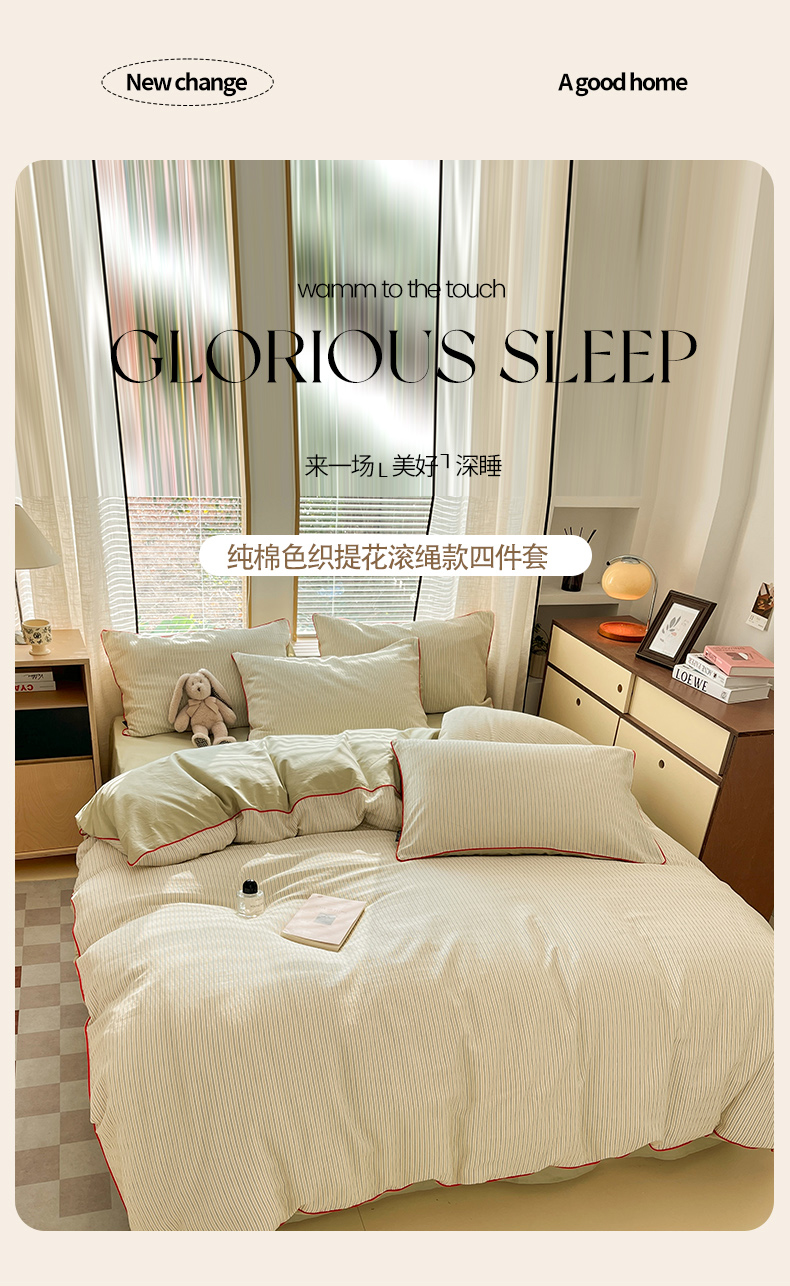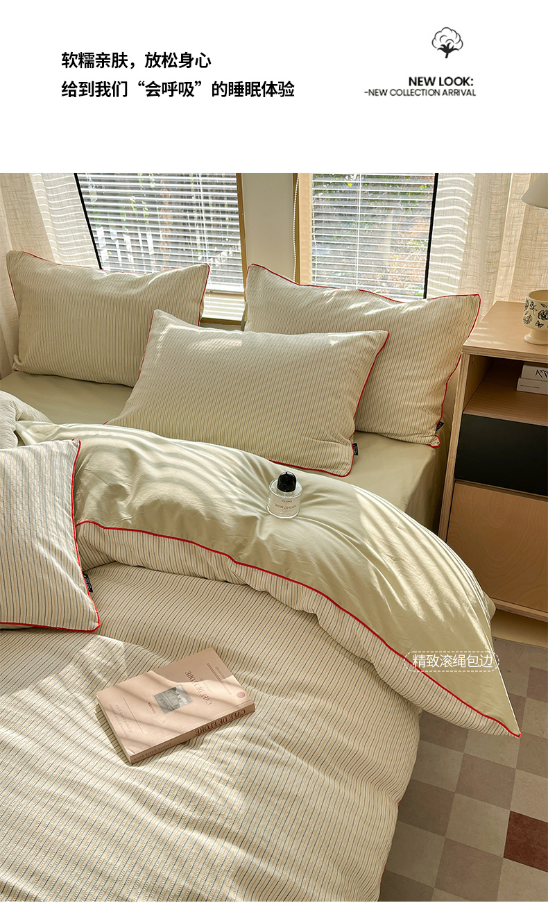 宜代光年 2025新款全棉纯棉色织提花滚绳款四件套-森韵 森韵-浅绿