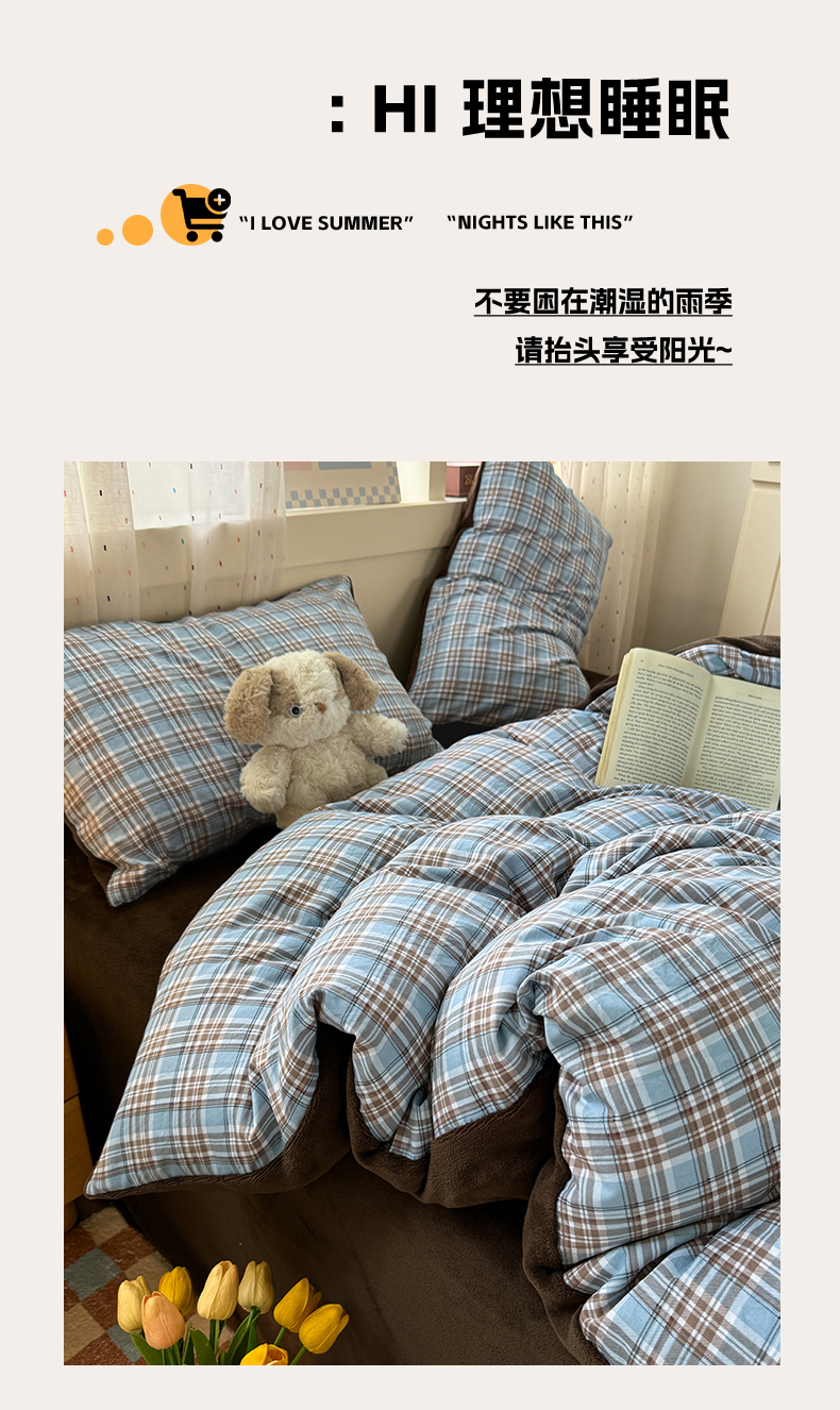 (总)十一家居 2025年秋冬新款A类亲肤云朵水洗棉无印风四件套-叙境系列,柏林蓝格+海青蓝,豆沙小格+粉玉,粉咖小格+粉玉,黑小格+铅灰,蓝咖小格+咖色,蓝小格+海青蓝,糖果小格+海青蓝,桃灰格+卡其