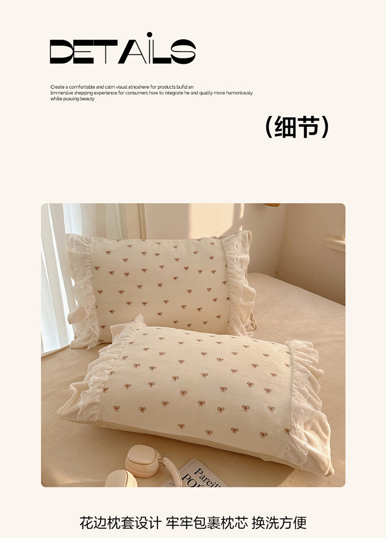 当前位置: 91家纺网 > 商品网购 > 床品套件 > 四件套 > 牛奶绒四件套 > 山茶家纺 2025新款韩系A类牛奶绒花边印花四件套梦境 梦境-蝴蝶结