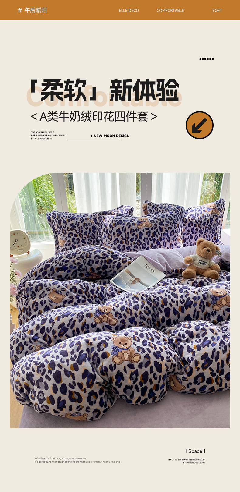 当前位置: 91家纺网 > 商品网购 > 床品套件 > 四件套 > 牛奶绒四件套 > 梵克保罗 2025新款A类高克重牛奶绒印花四件套(包含买家秀) 豹纹小熊