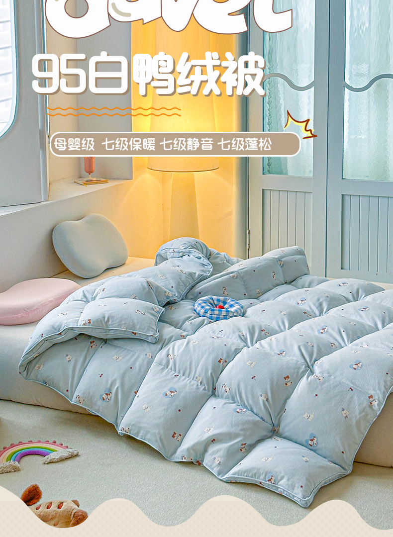 商品名称:暖羽屋羽绒馆 2025新款95白鸭绒被芯A类被子儿童羽绒被学生婴幼儿园小被芯 快乐伙伴