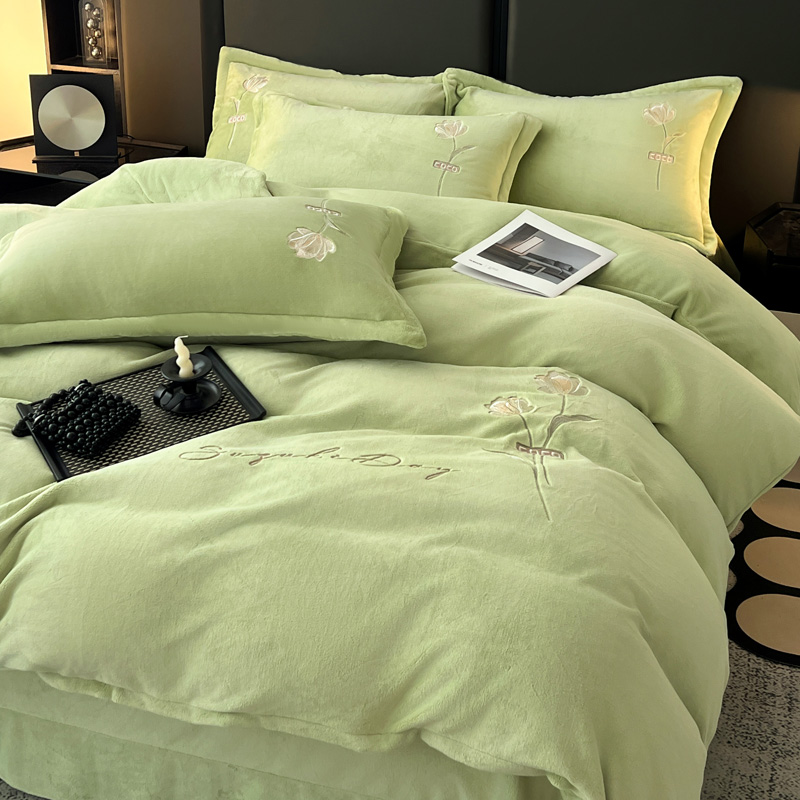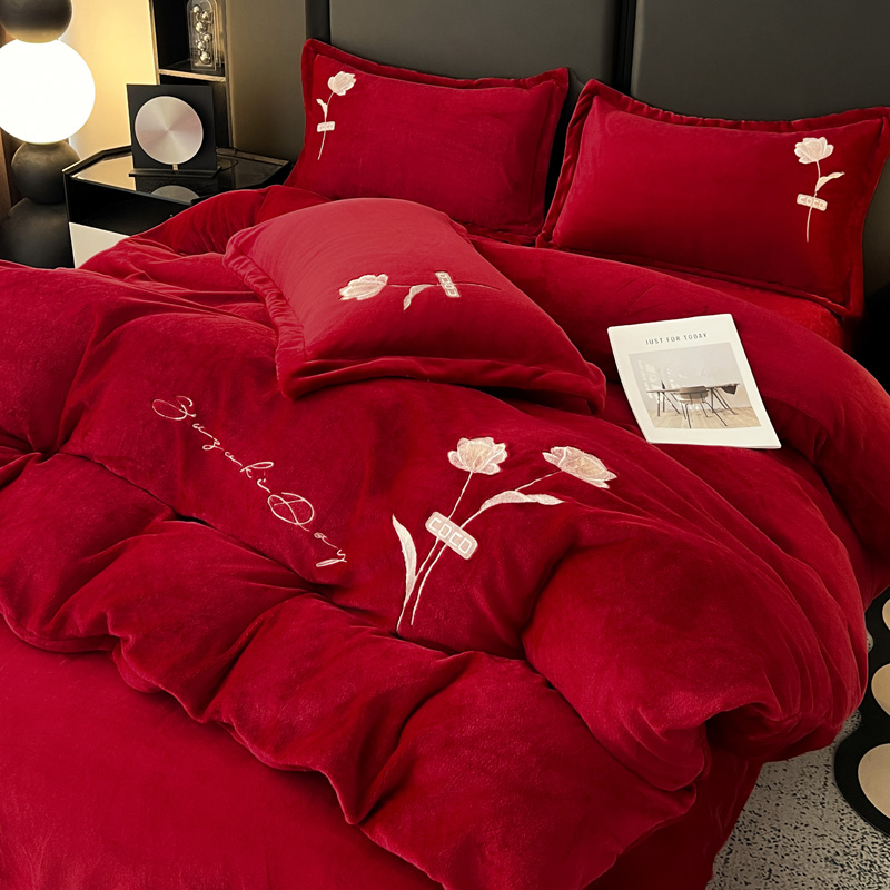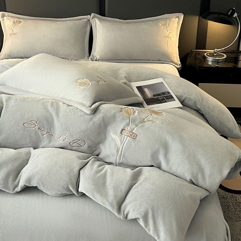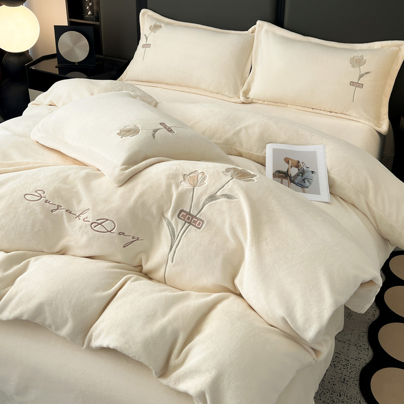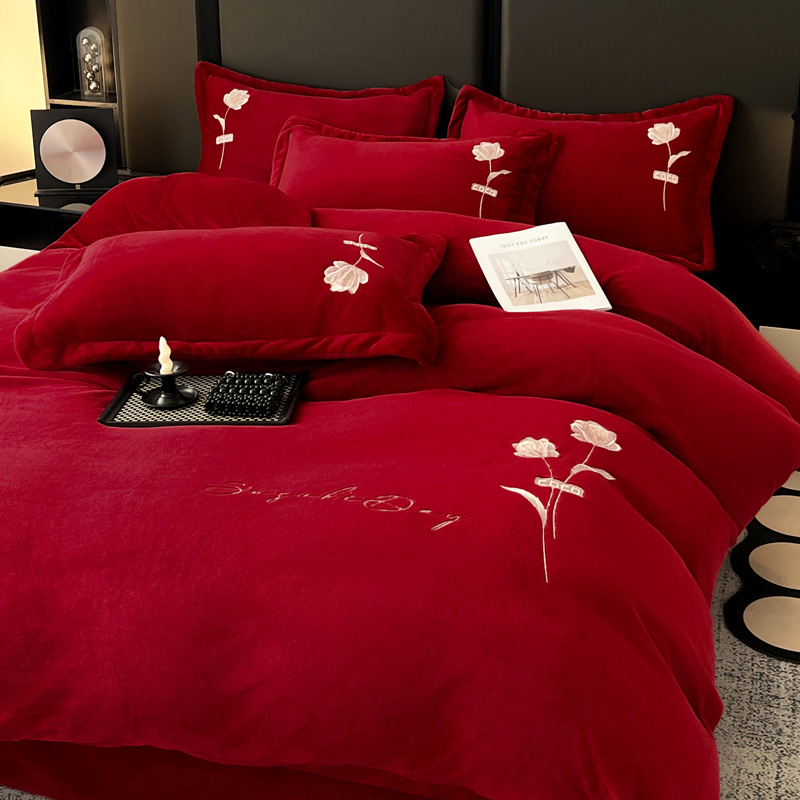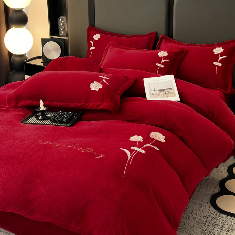 (总)梦莱斯 2025新款全消光床盖款牛奶绒刺绣四件套-山茶花,山茶花-橙,山茶花-大红,山茶花-粉,山茶花-灰,山茶花-绿,山茶花-奶白,山茶花-浅紫,山茶花-天蓝