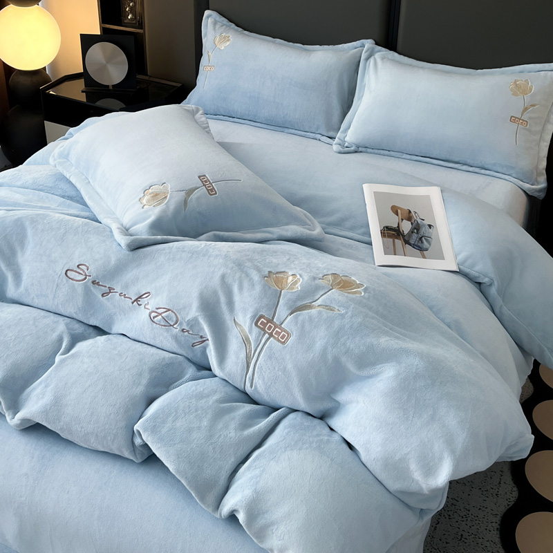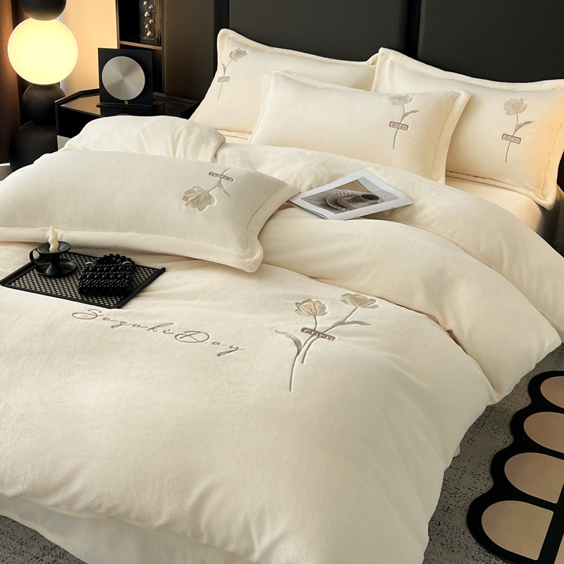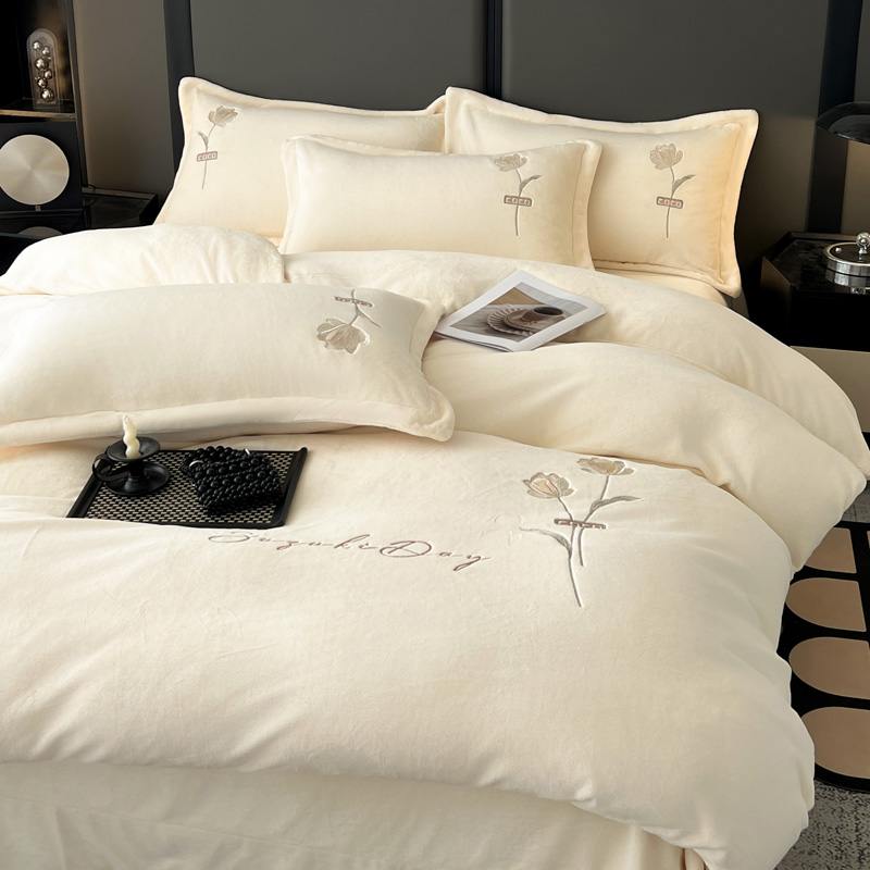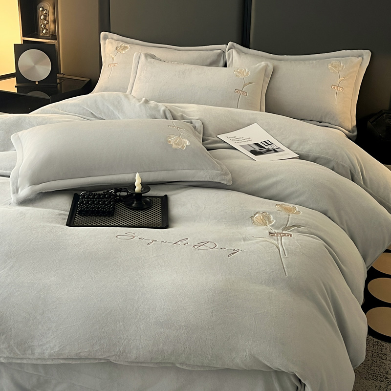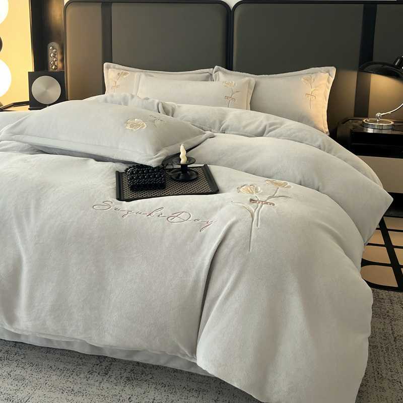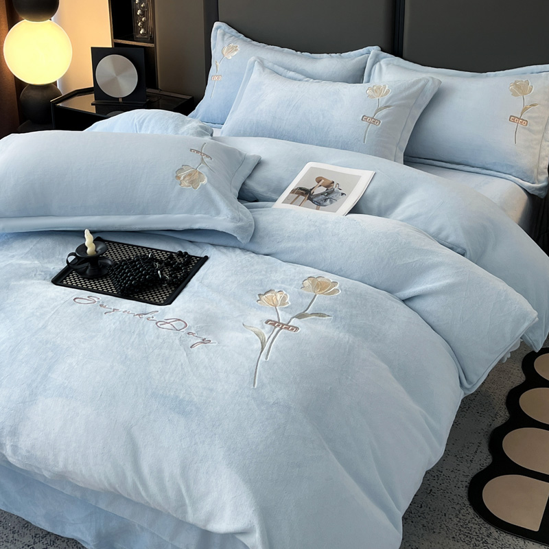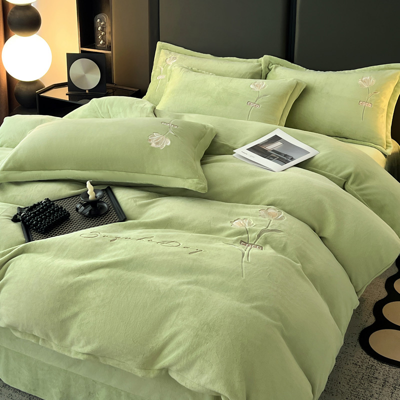 (总)梦莱斯 2025新款全消光床盖款牛奶绒刺绣四件套-山茶花,山茶花-橙,山茶花-大红,山茶花-粉,山茶花-灰,山茶花-绿,山茶花-奶白,山茶花-浅紫,山茶花-天蓝