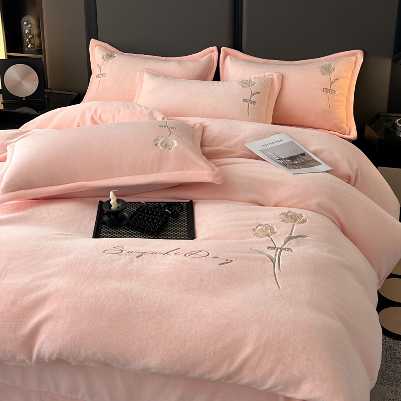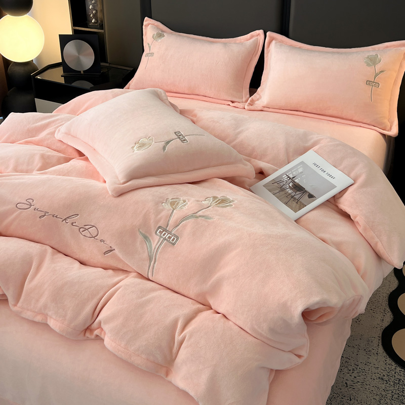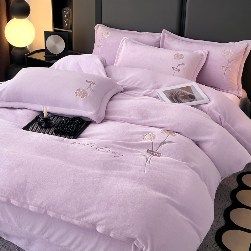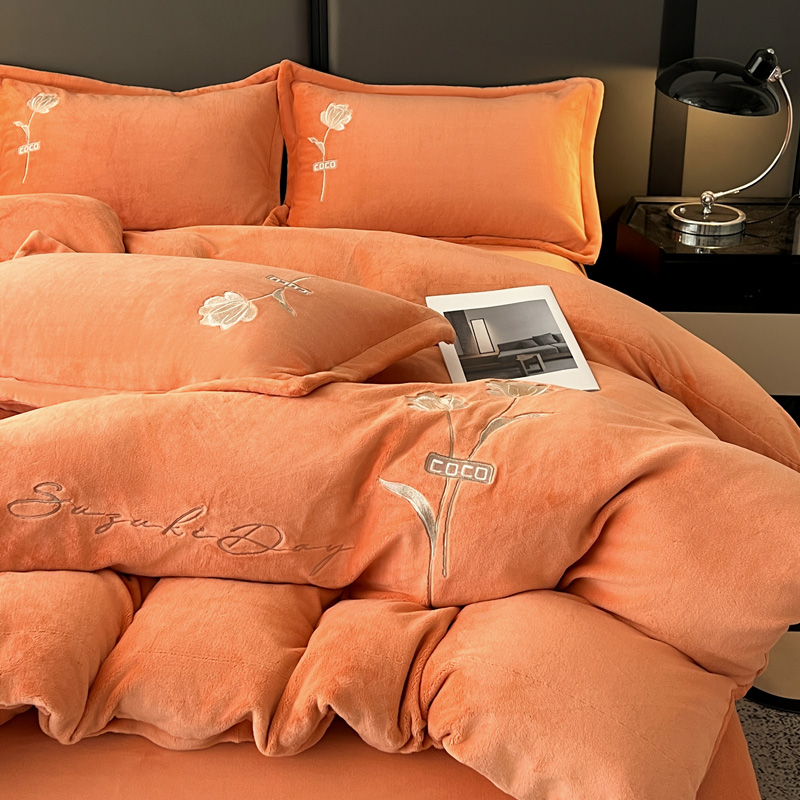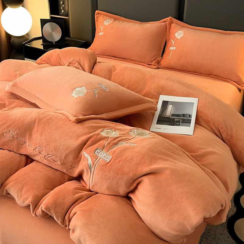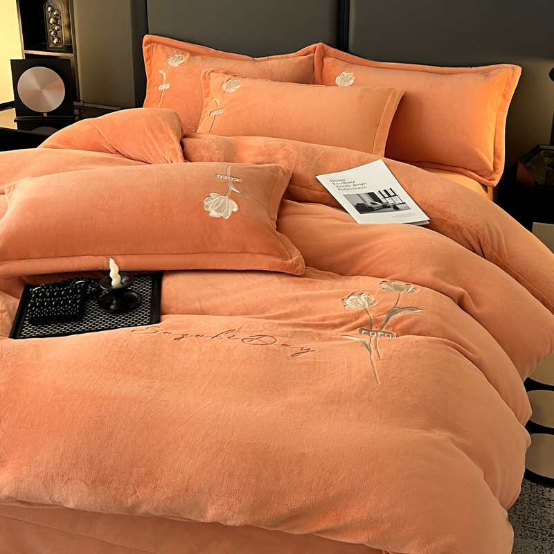 (总)梦莱斯 2025全消光加厚牛奶绒四件套 - 山茶花系列,山茶花-橙,山茶花-粉,山茶花-绿,山茶花-奶白,山茶花-浅灰,山茶花-浅紫,山茶花-天蓝