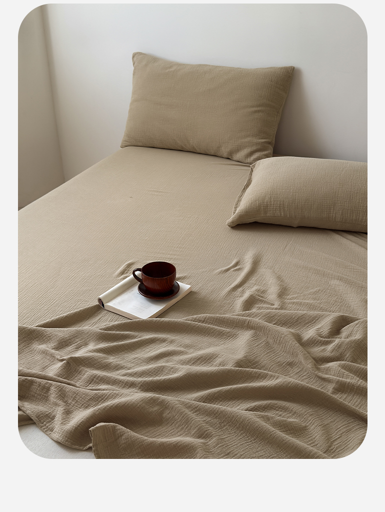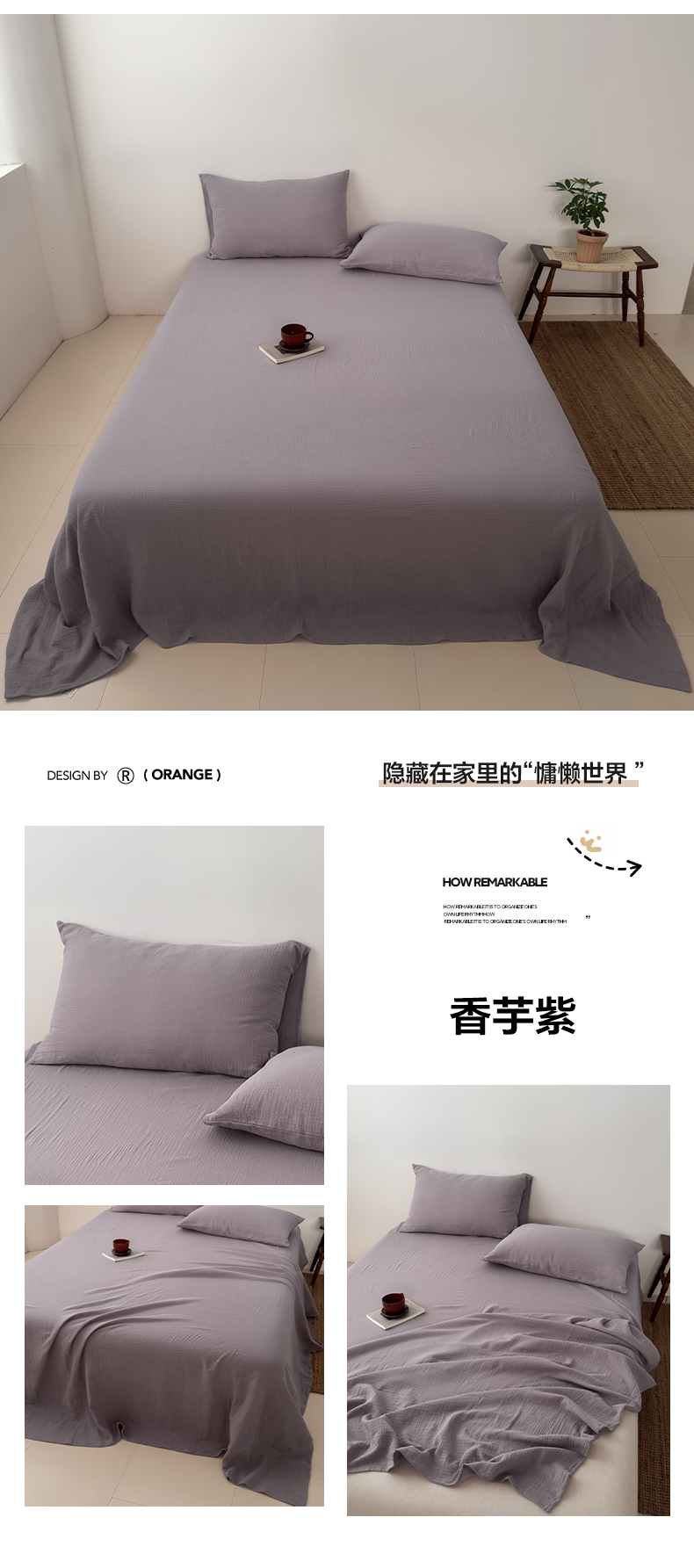 (总)玖弘家居 2025新款软糯皱皱纱单品床单系列,安格拉红,香芋紫,巧克力棕,太妃棕,杏仁,橄榄绿,奶白,黑巧,燕麦