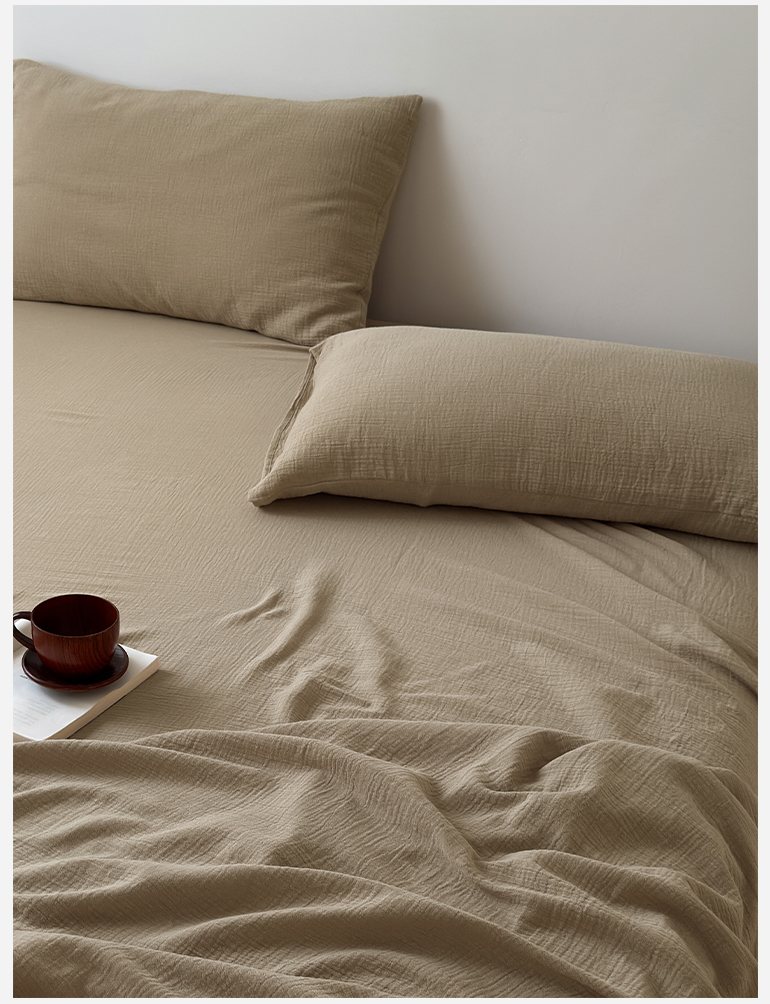 (总)玖弘家居 2025新款软糯皱皱纱单品被套系列,安哥拉红,黑巧,燕麦,杏仁,巧克力棕,奶白,太妃棕,橄榄绿,芋紫,组合