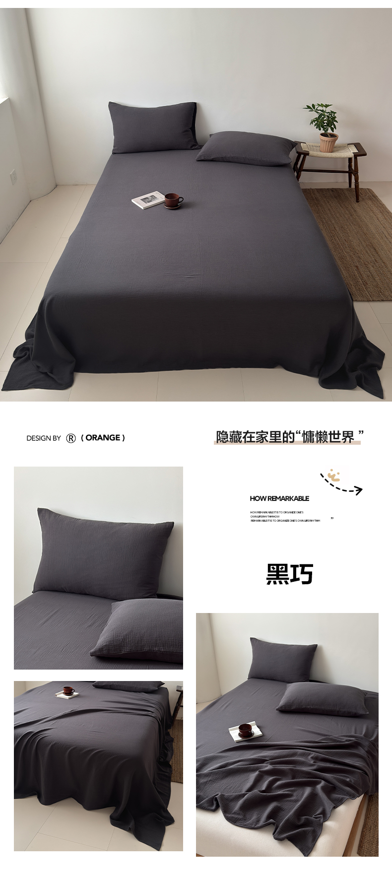 玖弘家居 2025新款软糯皱皱纱单品床单系列 黑巧