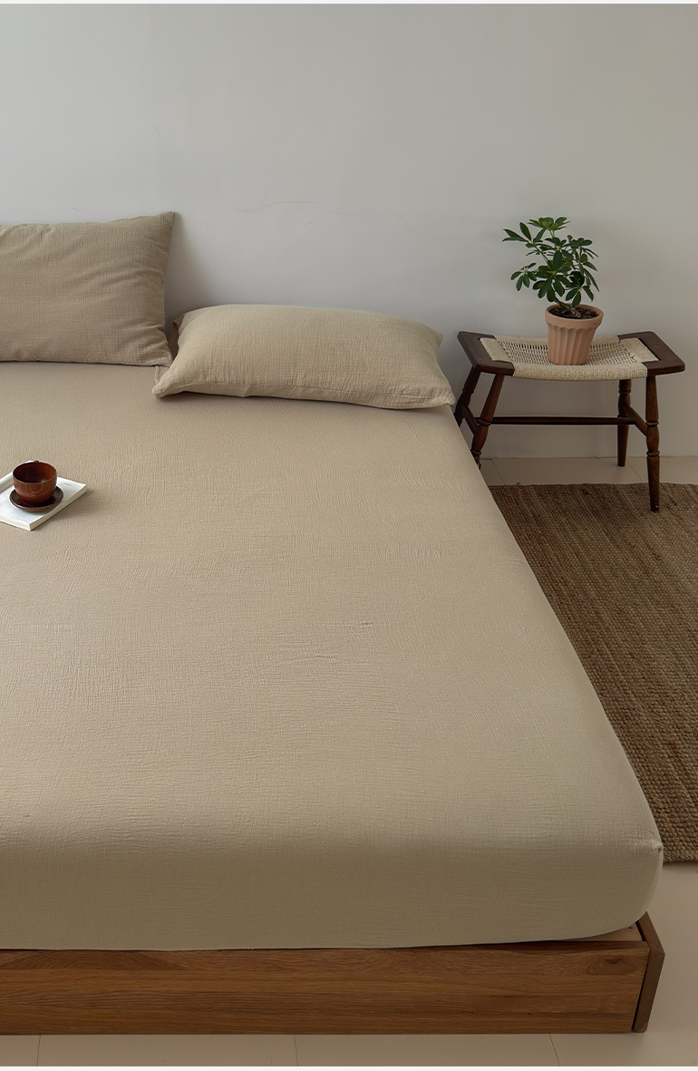 玖弘家居 2025新款软糯皱皱纱单品床笠系列 奶白
