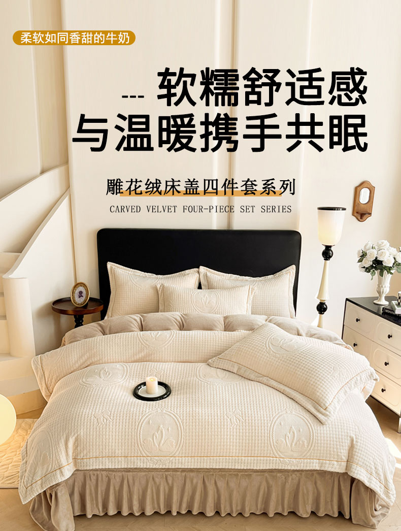 (总)代芙家纺 2025新款全消光雕花四件套-爱恋,爱恋-粉玉,爱恋-海蓝,爱恋-亮橙,爱恋-米白,爱恋-魔芋紫,爱恋-紫豆沙