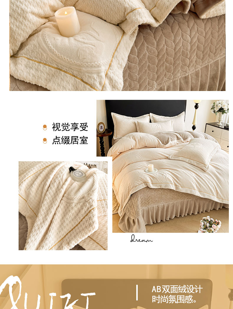 (总)代芙家纺 2025新款宝宝绒夹棉床盖款四件套,甜心-粉豆沙,甜心-海蓝,甜心-火山红,甜心-魔力紫,甜心-优雅灰
