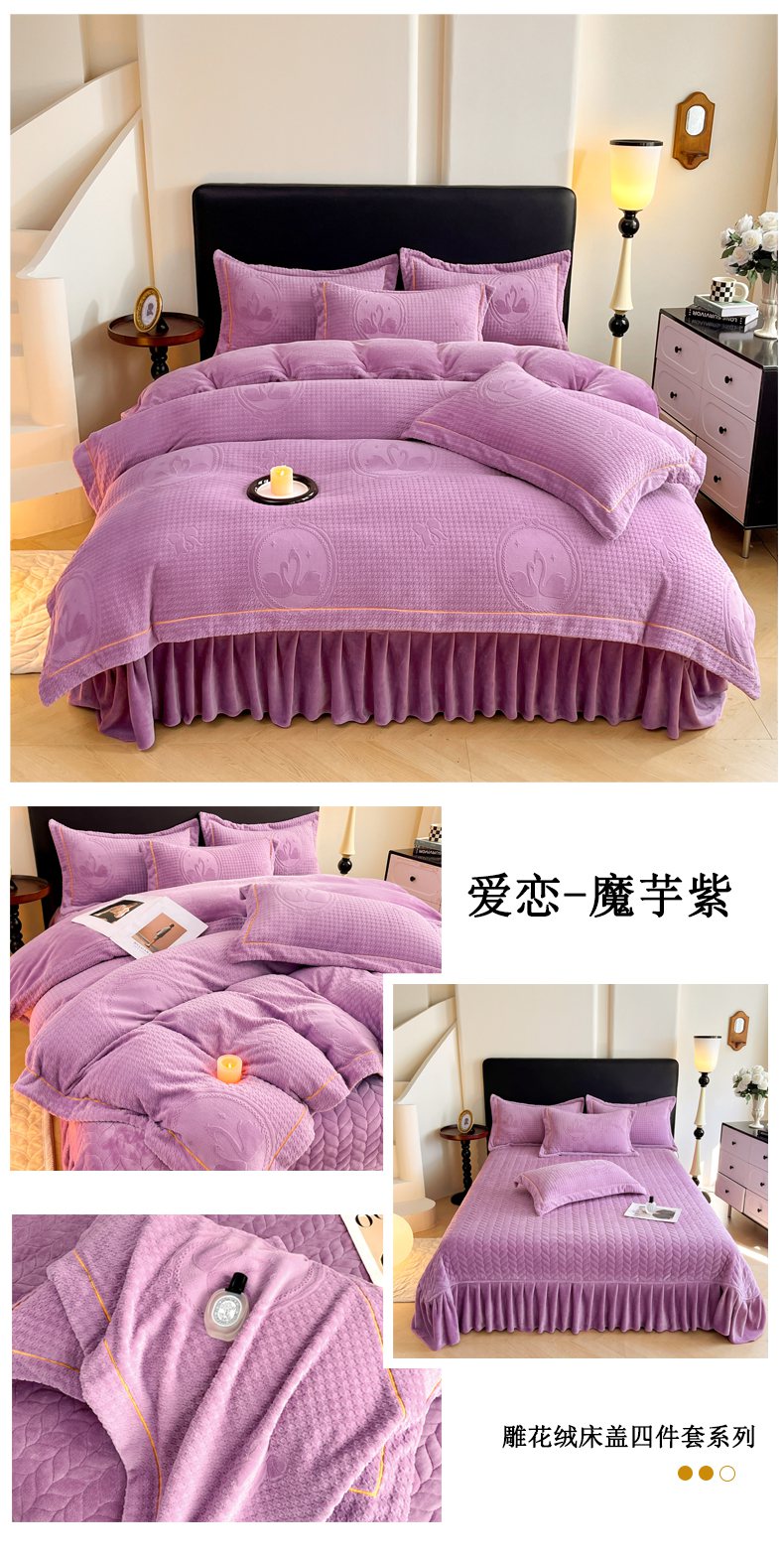 商品名称:代芙家纺 2025新款全消光雕花四件套-爱恋 爱恋-魔芋紫