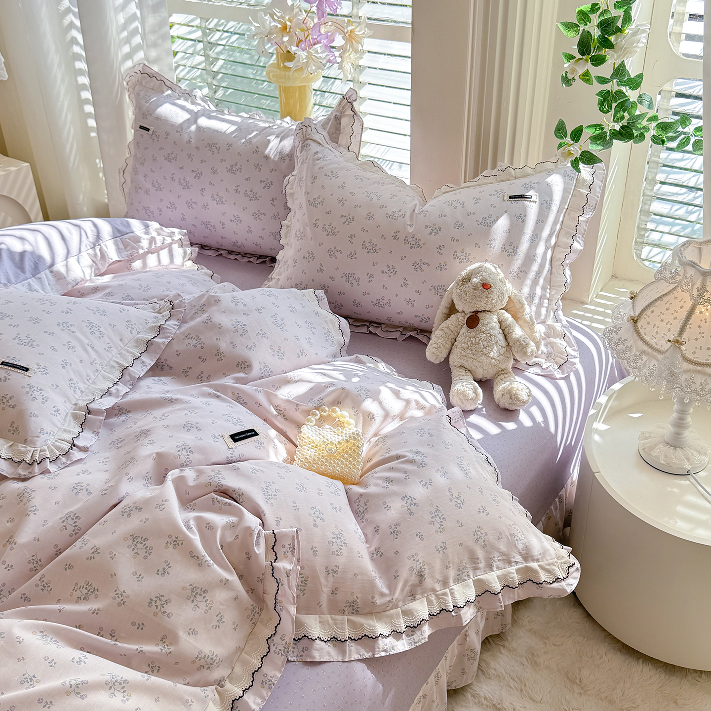 商品名称:艾唯希家纺 2025新款全棉双层花边四件套纯棉小碎花10个花型-花边系列 花冉