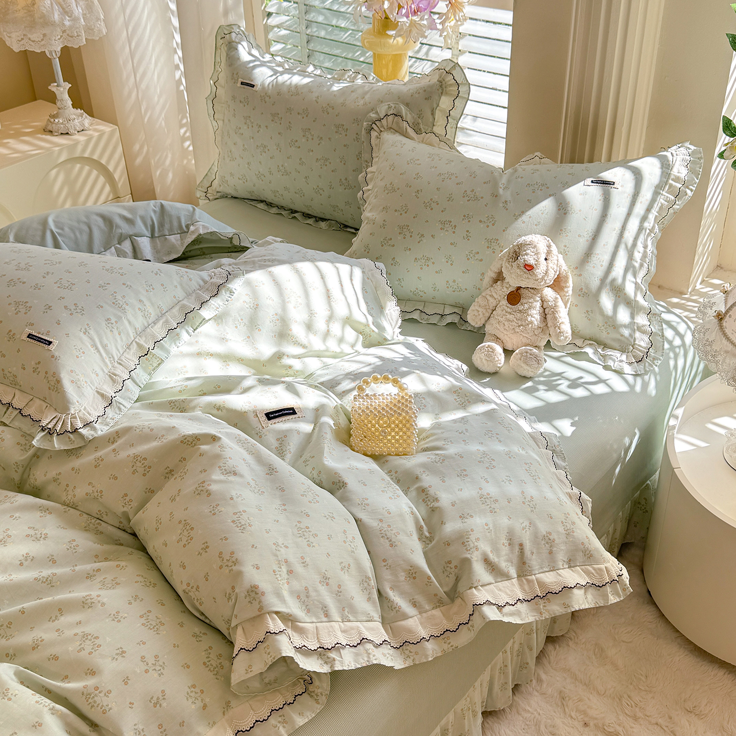 (总)艾唯希家纺 2025新款全棉双层花边四件套纯棉小碎花10个花型-花边系列,春意萌,恋之晴空,奶芙蓉-绿,奶芙蓉-粉,林间物语-绿,林间物语-紫,花冉,花艺漫漫,梳璃,雾里花