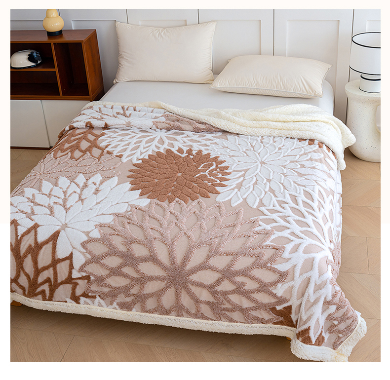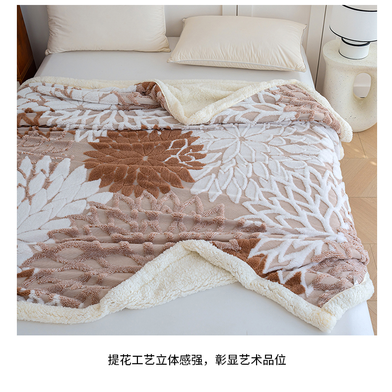 (总)枋梢家纺 2025新款亮丝兔毛绒兔毛提花暖居花漾羊羔绒 双层加厚保暖盖毯 居家午睡保暖毯,花漾-粉色,花漾-咖色,花漾-绿色,花漾-米黄,花漾-浅灰,花漾-深灰,花漾-驼色,花漾-紫色,包装