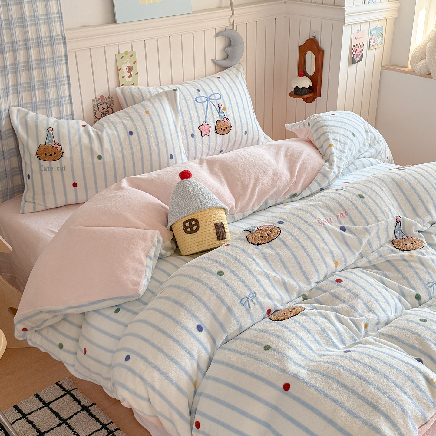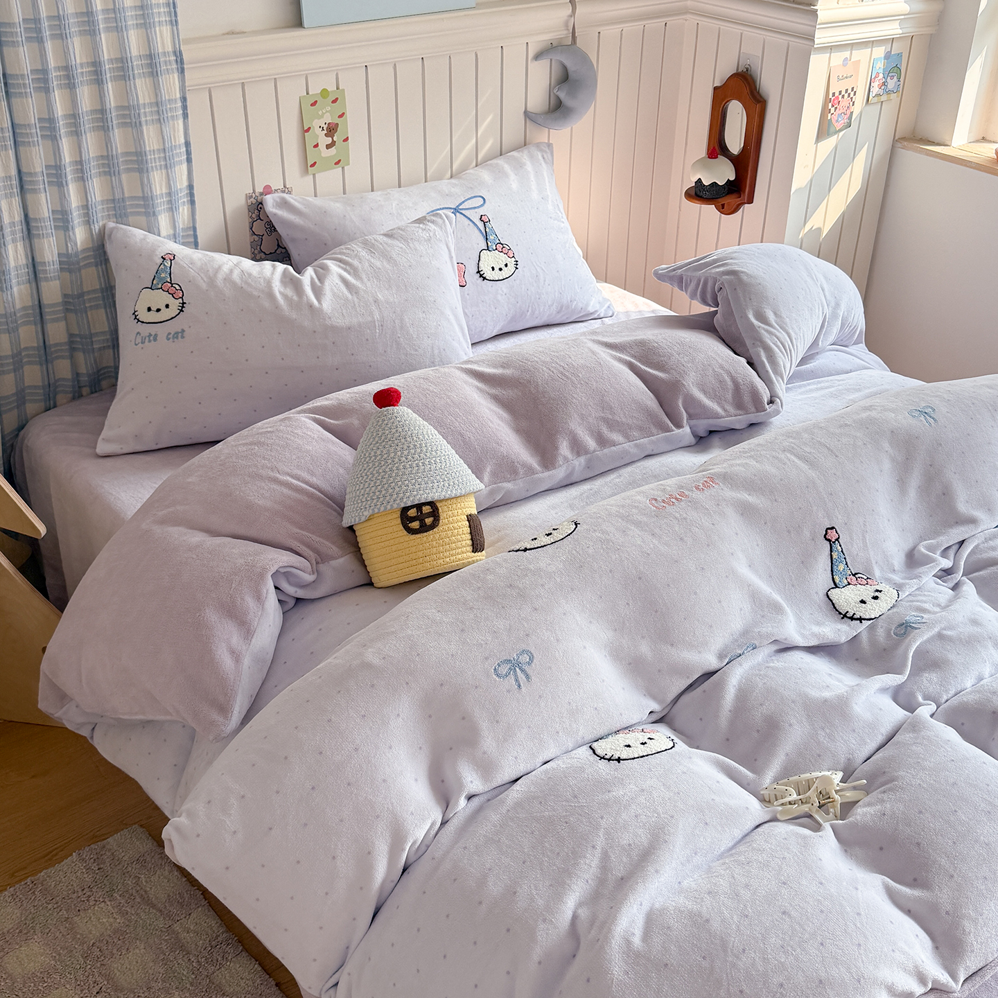 (总)潘朵拉家纺 2025新款A类牛奶绒毛巾绣系列四件套,粉格西高地,黑皮琪,甜梦喵,凯蒂酱,辣妹kt,星梦泡仔